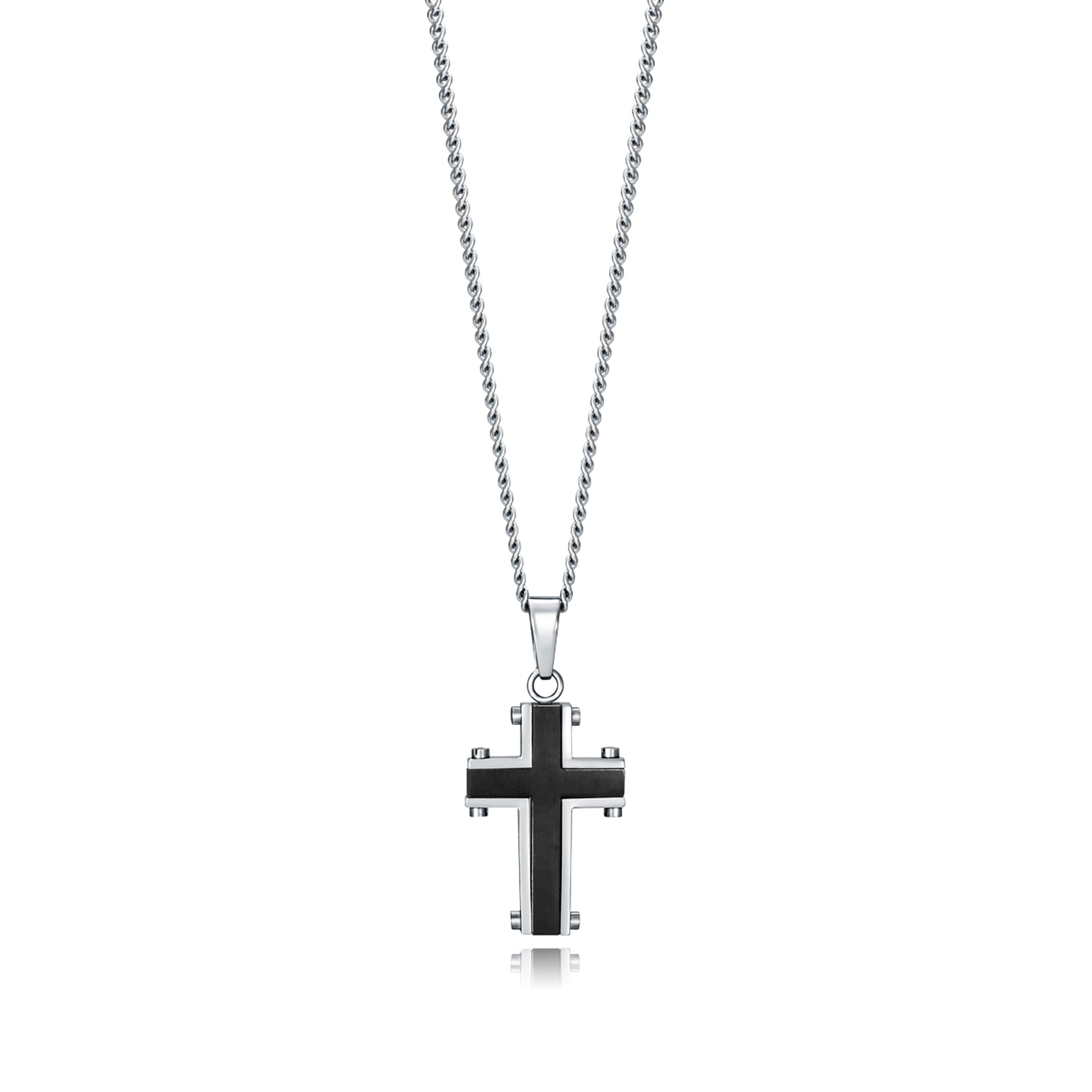 Anillo de hombre Beat de acero con cruces negra grabadas
