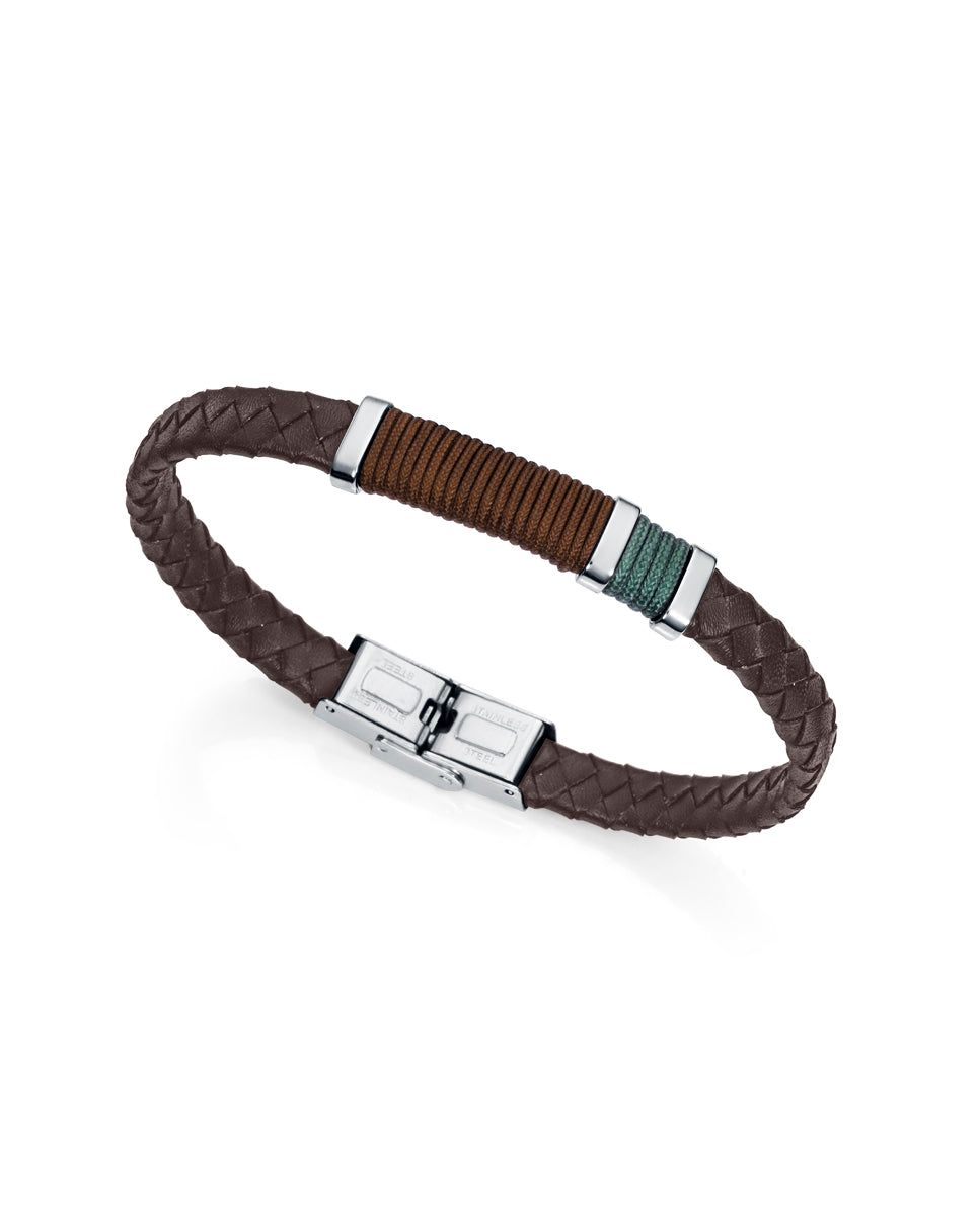 Heat men's steel bracelet with brown and green leather