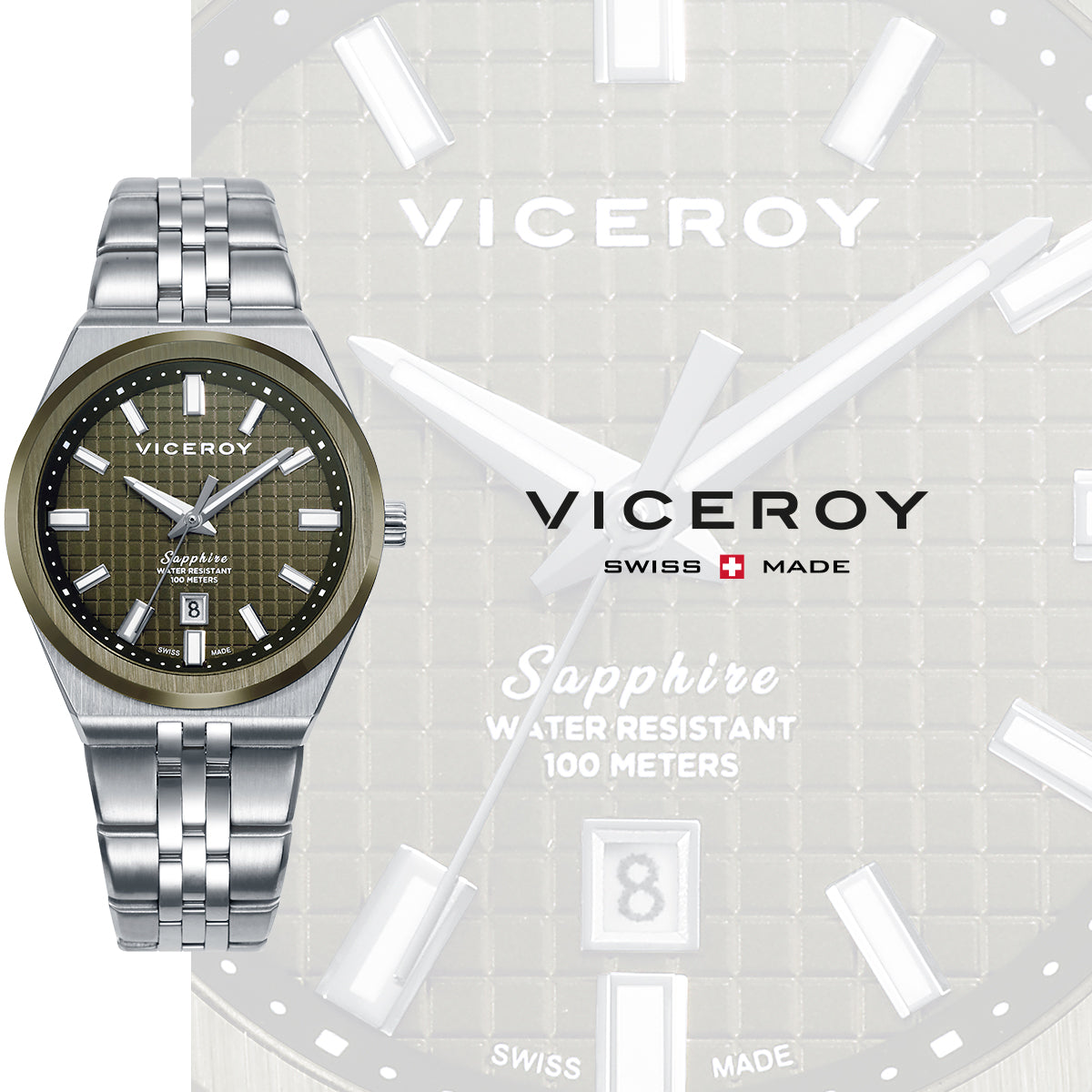 10 ATM steel case watch, steel bracelet, Swiss quartz movement, Swiss made