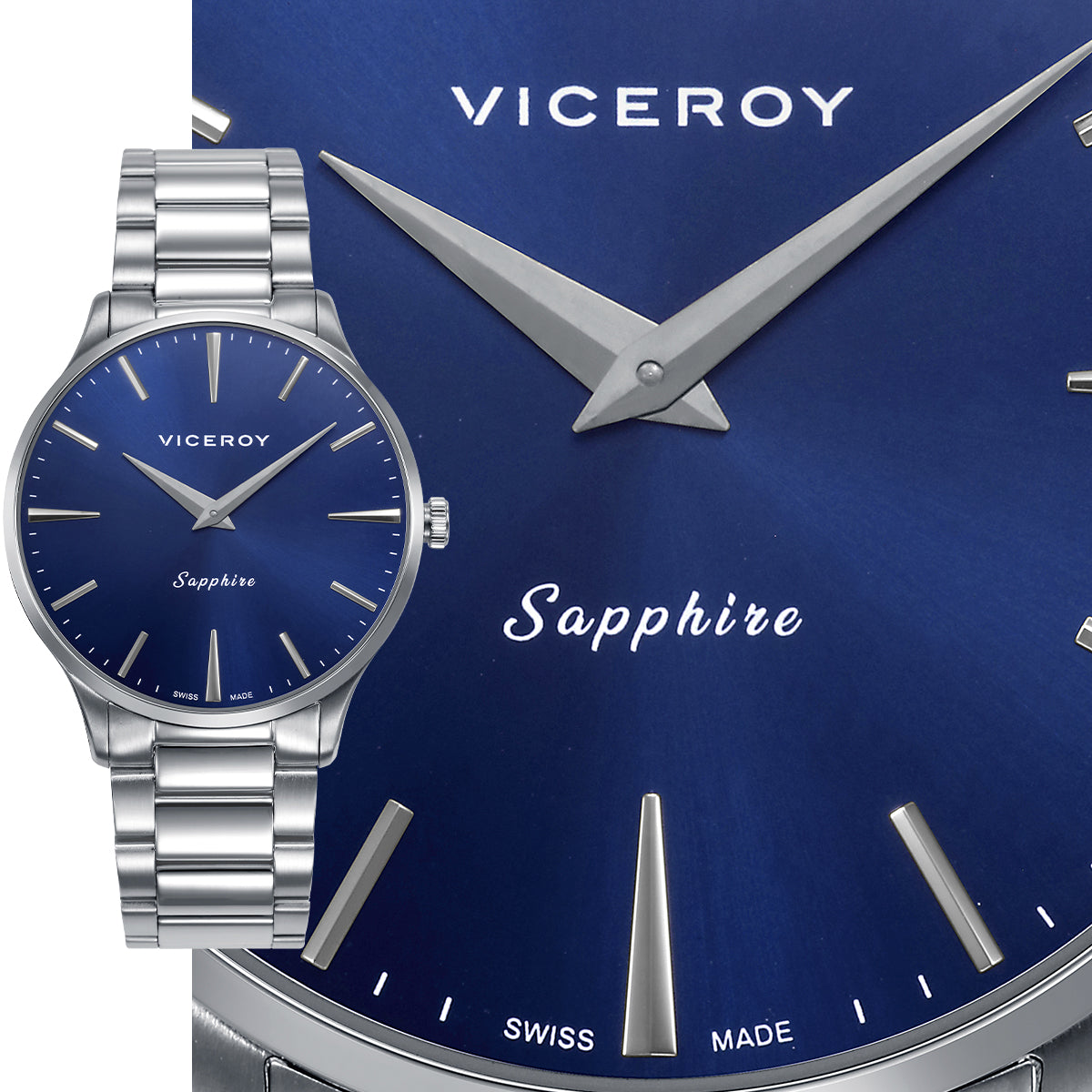 Classic Swiss-made men's watch with a two-hand movement and a design that combines elegance and modernity. Its rose-coated steel case and 5 ATM water resistance stand out alongside the silver dial with matching hands. The brown leather strap adds warmth, while the sapphire crystal ensures durability and distinction, in true Viceroy style.