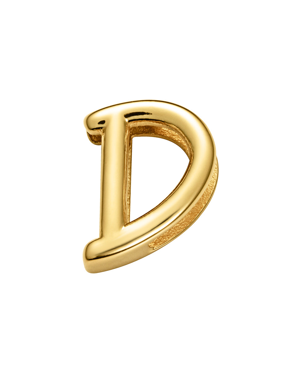 Golden IP steel letter D motif to be mounted on a customizable bracelet