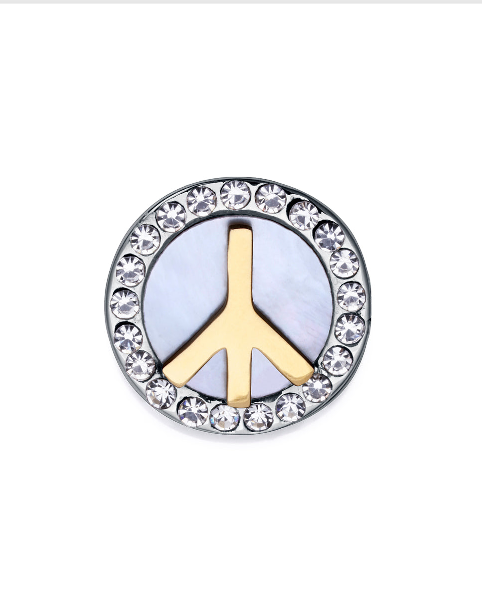 Chic steel motif with peace symbol in gold Ip with mother of pearl background and white zircons