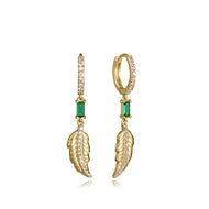 Sterling silver necklace with gold plating, feather pendant and white and green cubic zirconia. Length 42 + 3 cm