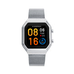 Montre intelligente en aluminium gris avec maille milanaise en acier gris et bracelet noir