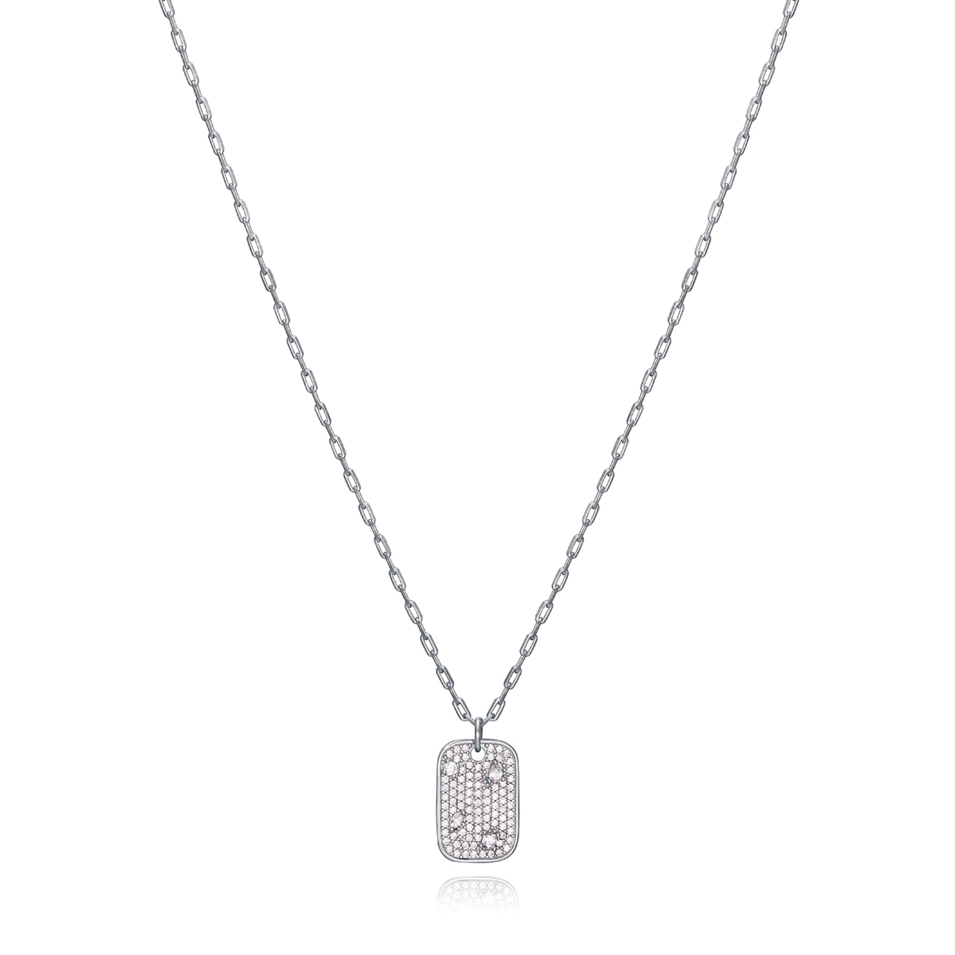 Collier élégant en argent sterling rhodié avec plaque pendante avec zircons blancs