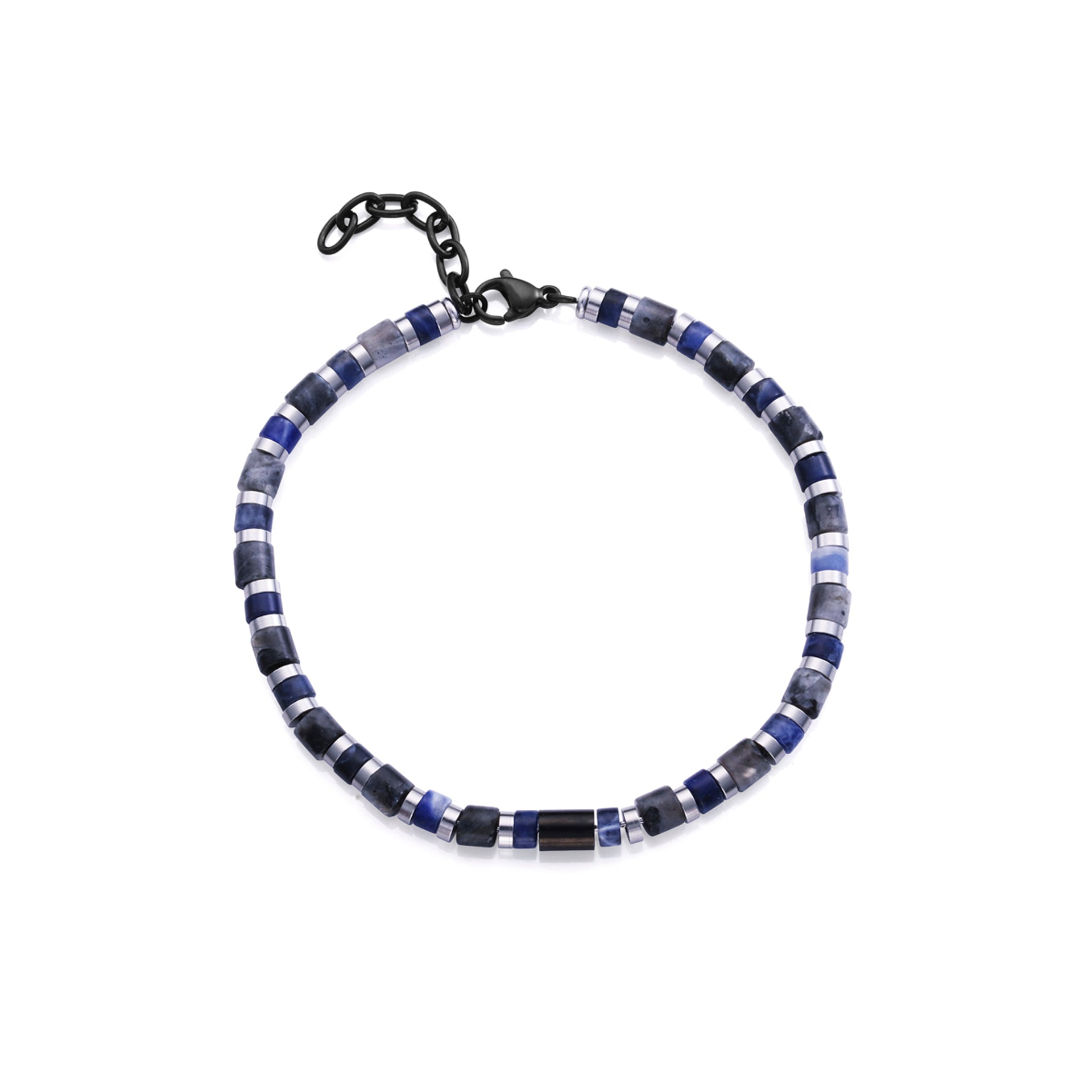 Bracelet homme en acier Ip noir avec pierres naturelles