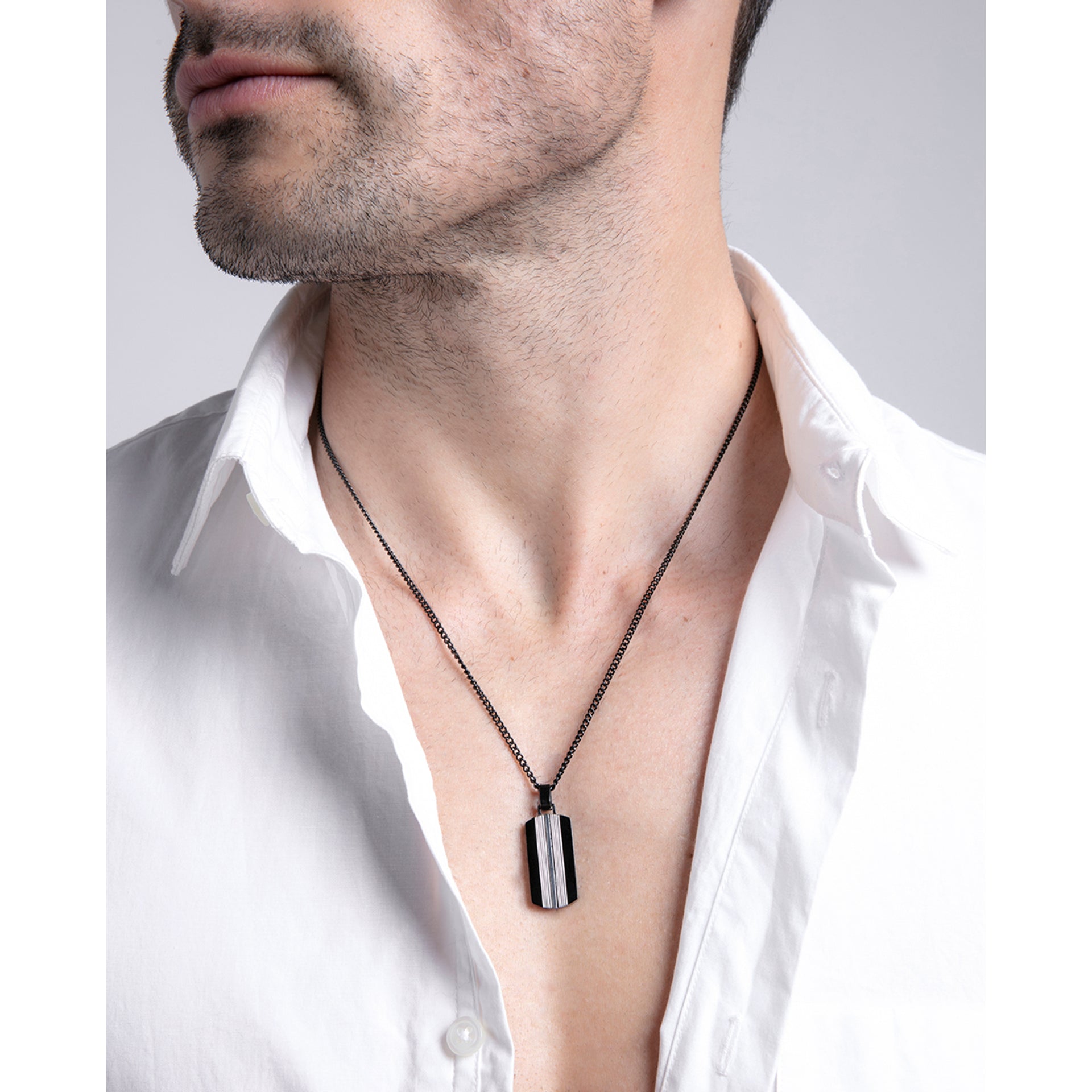 Collier en acier avec pendentif en Ip noir et plaque d'acier