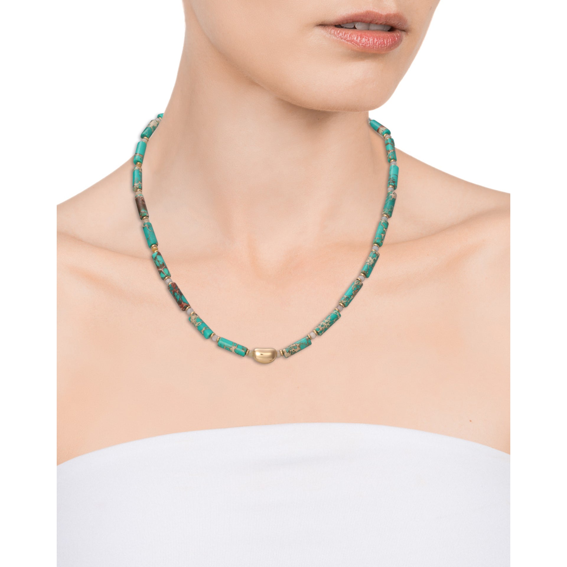 Collier chic en acier en Ip doré avec pierres turquoise et agate