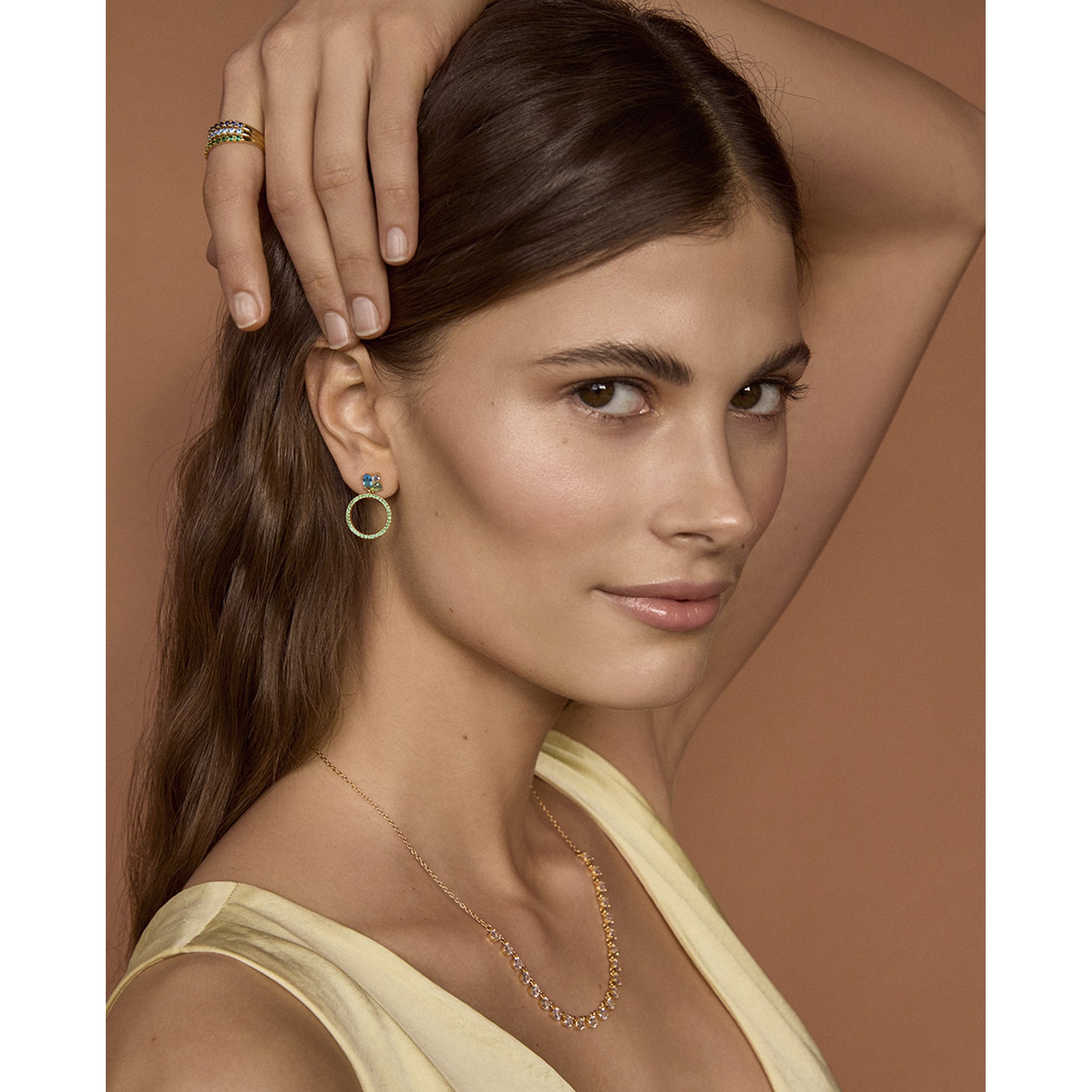 Élégantes boucles d'oreilles multi-créoles en argent sterling plaqué or avec zircons verts