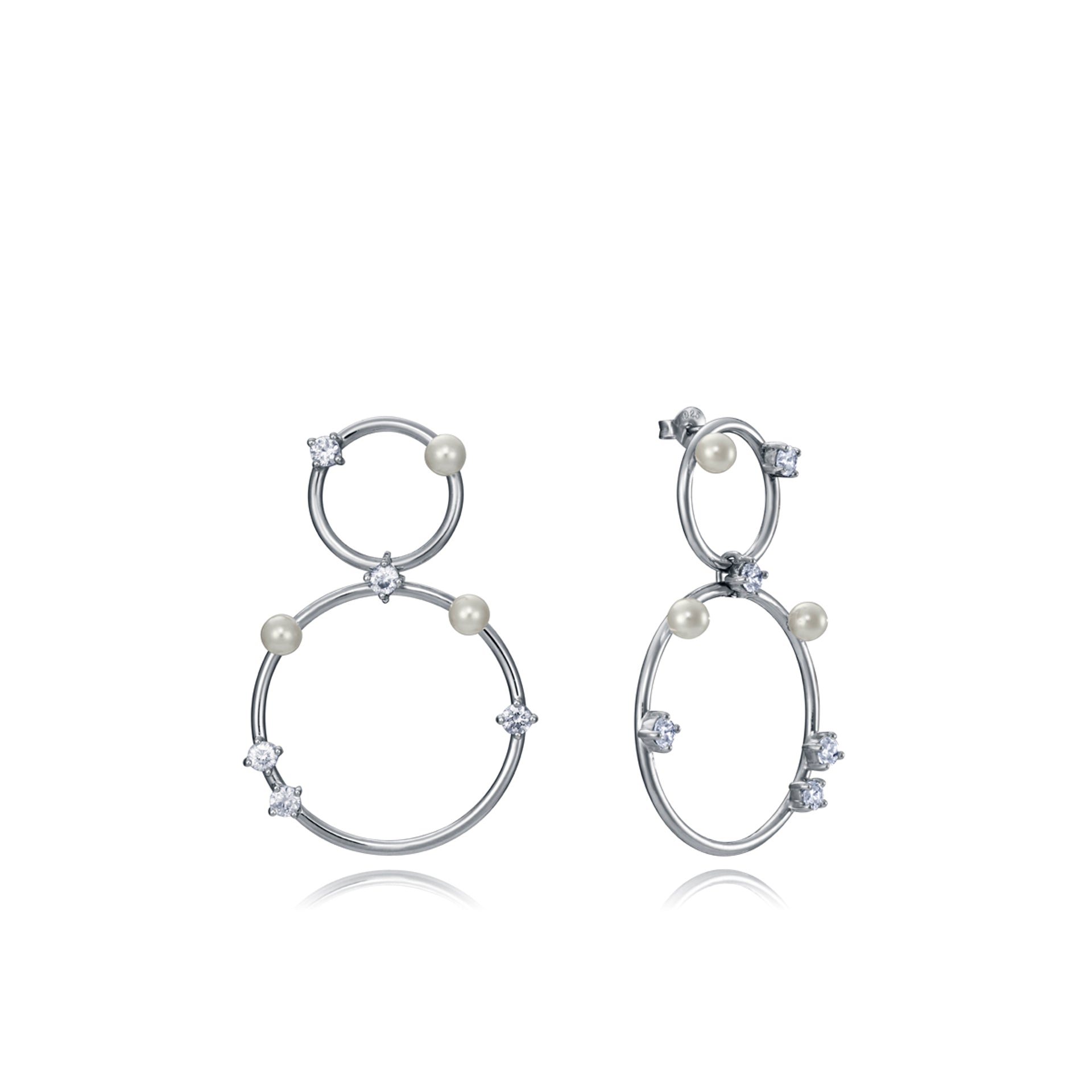 Boucles d'oreilles élégantes en argent sterling avec zircones et perles synthétiques