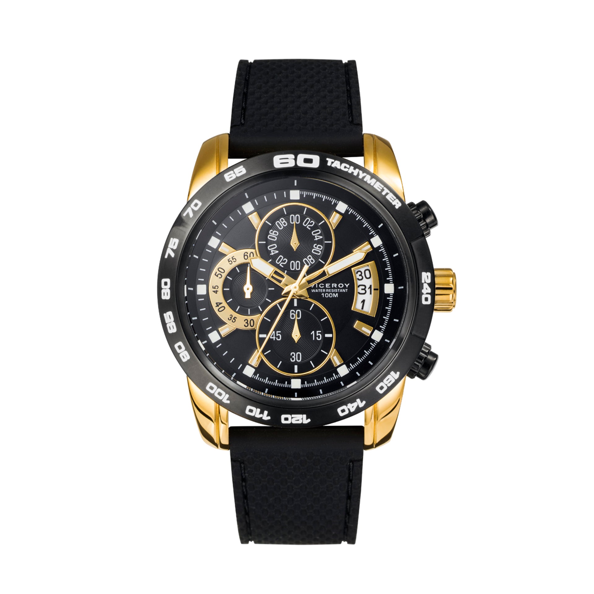 Montre pour homme en acier chronographe Heat avec IP doré et bracelet en silicone noir
