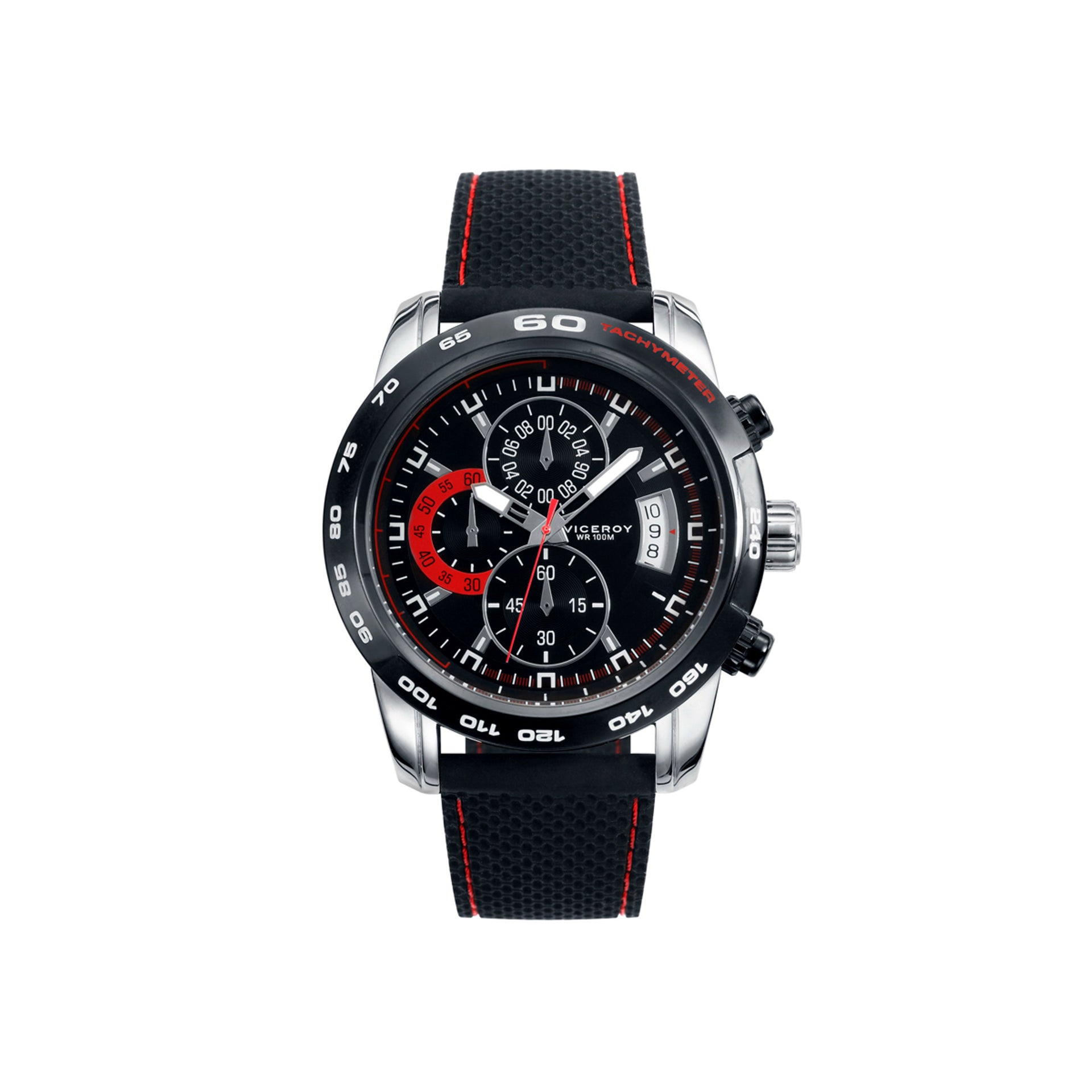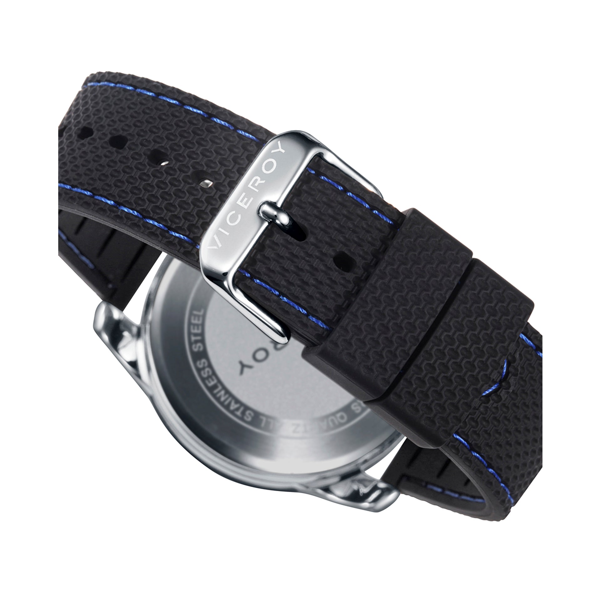Montre pour homme en acier chronographe Heat avec IP bleu et bracelet en silicone noir