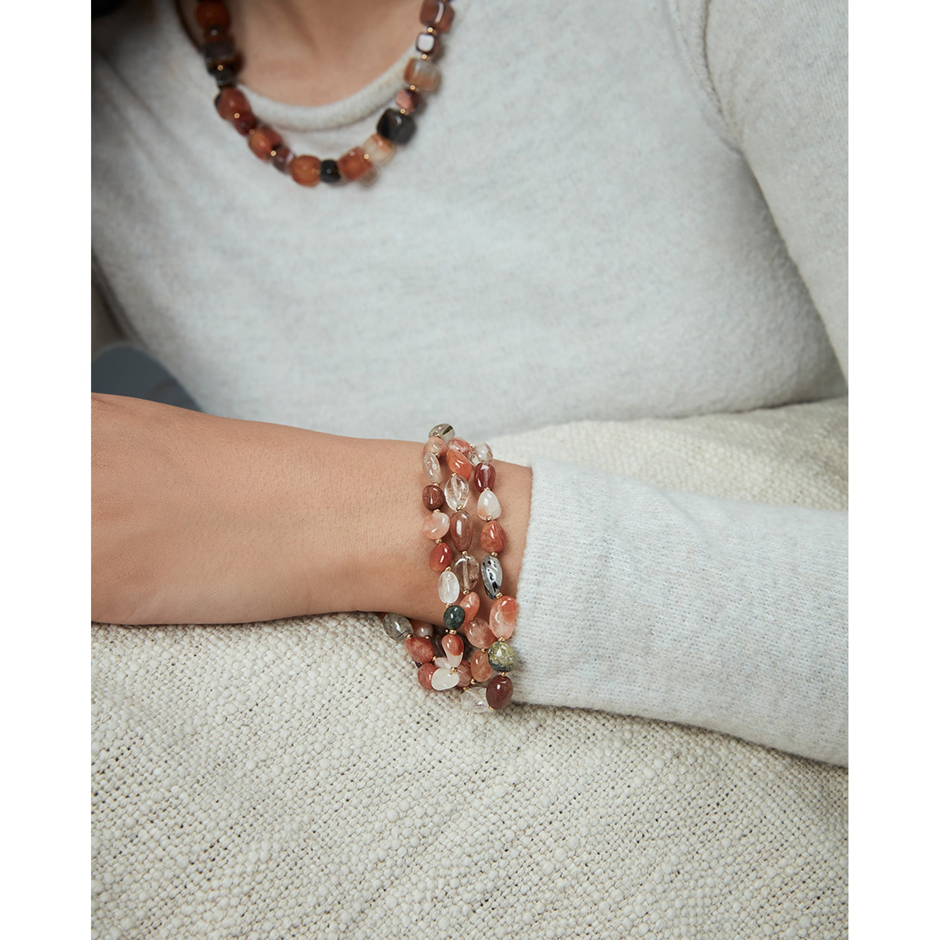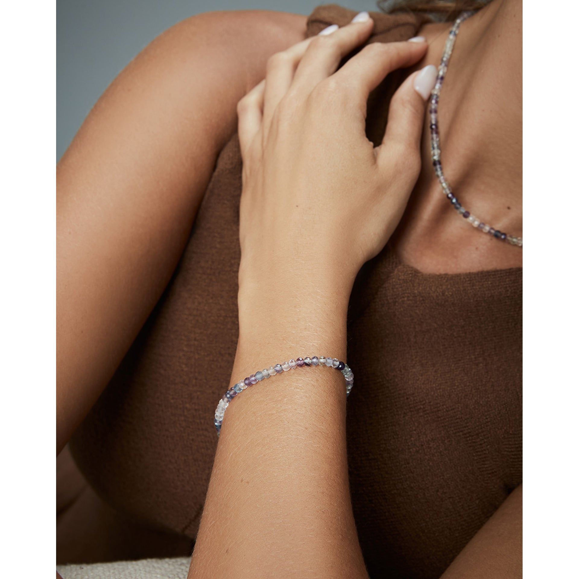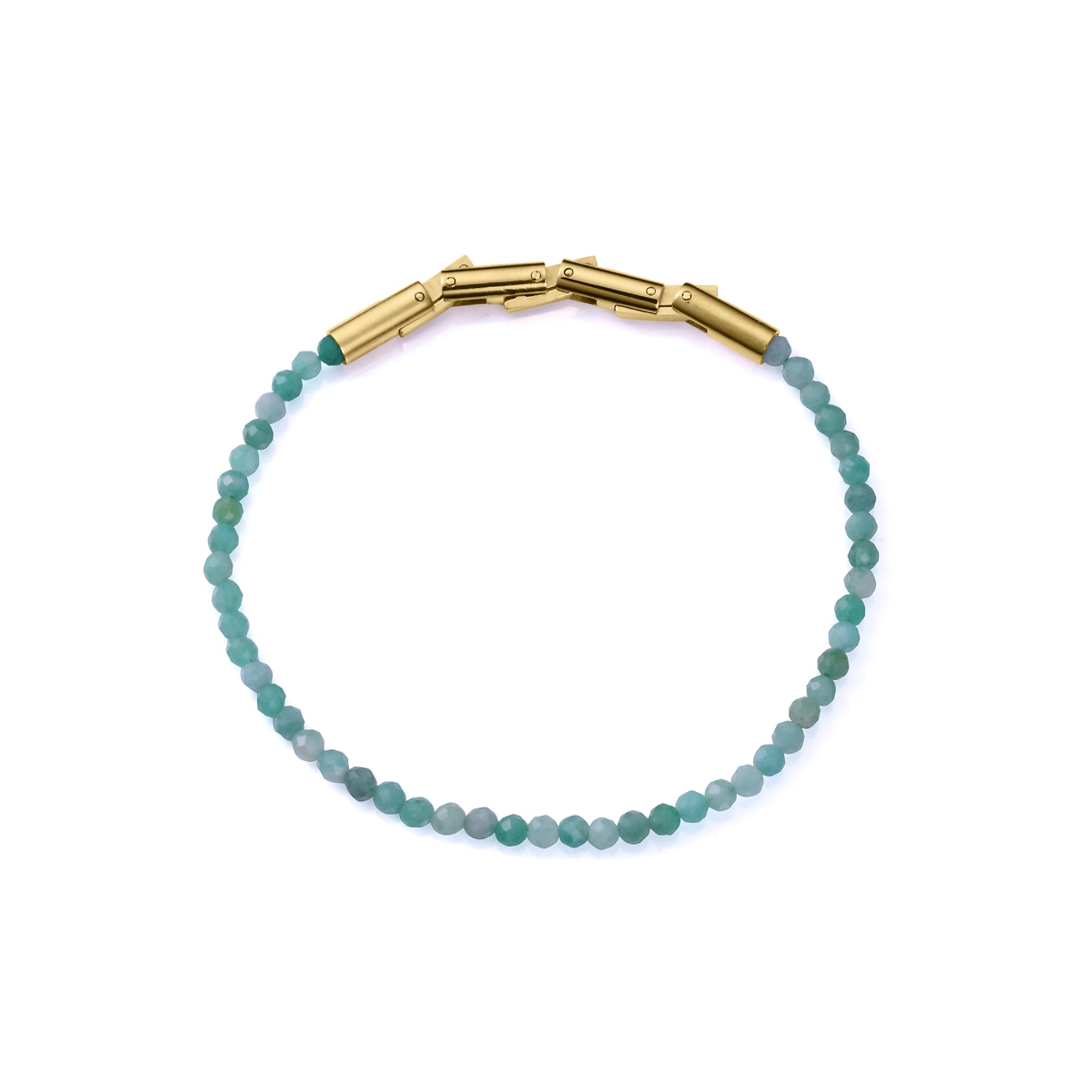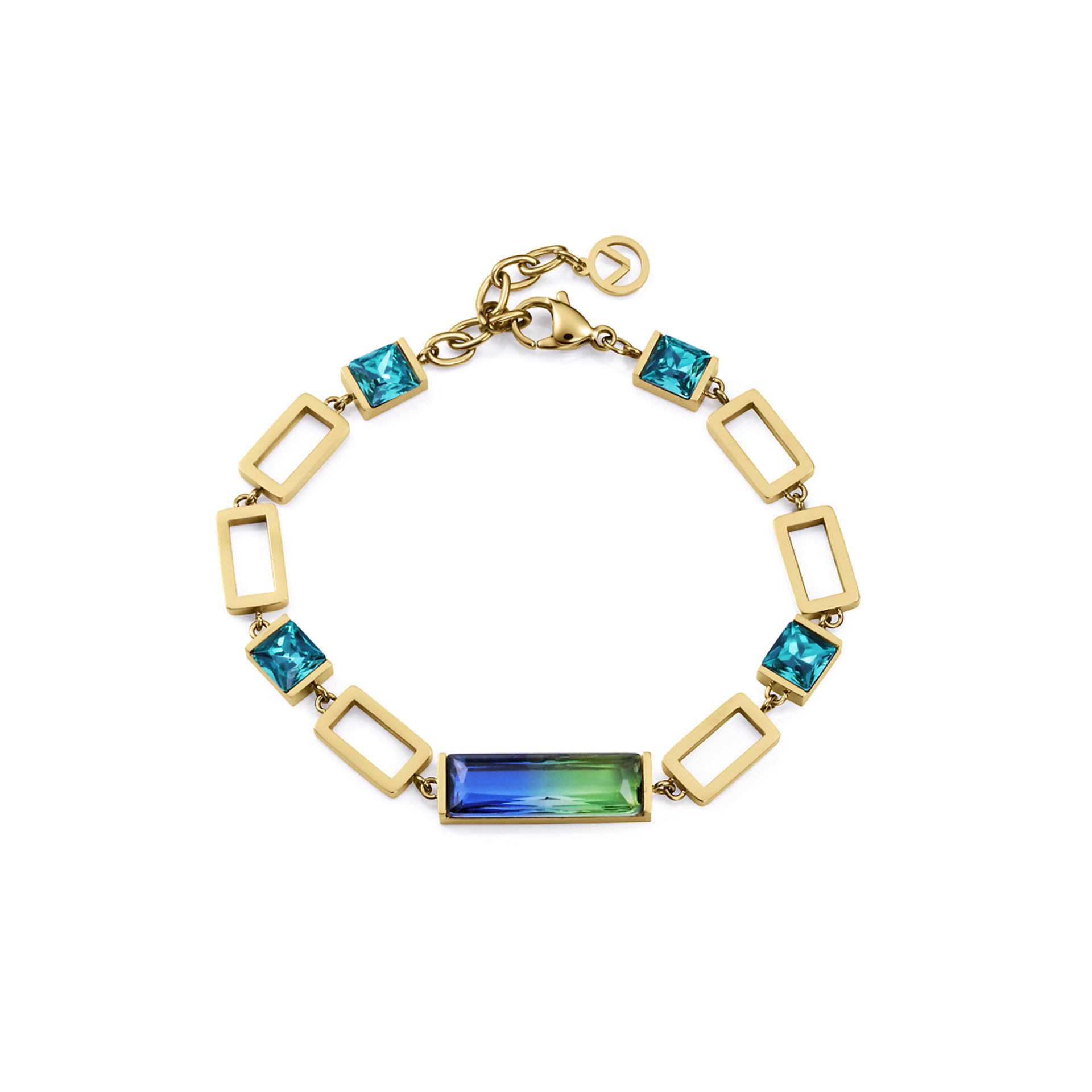 Bracelet femme en acier IP plaqué or avec cristaux verts et bleus