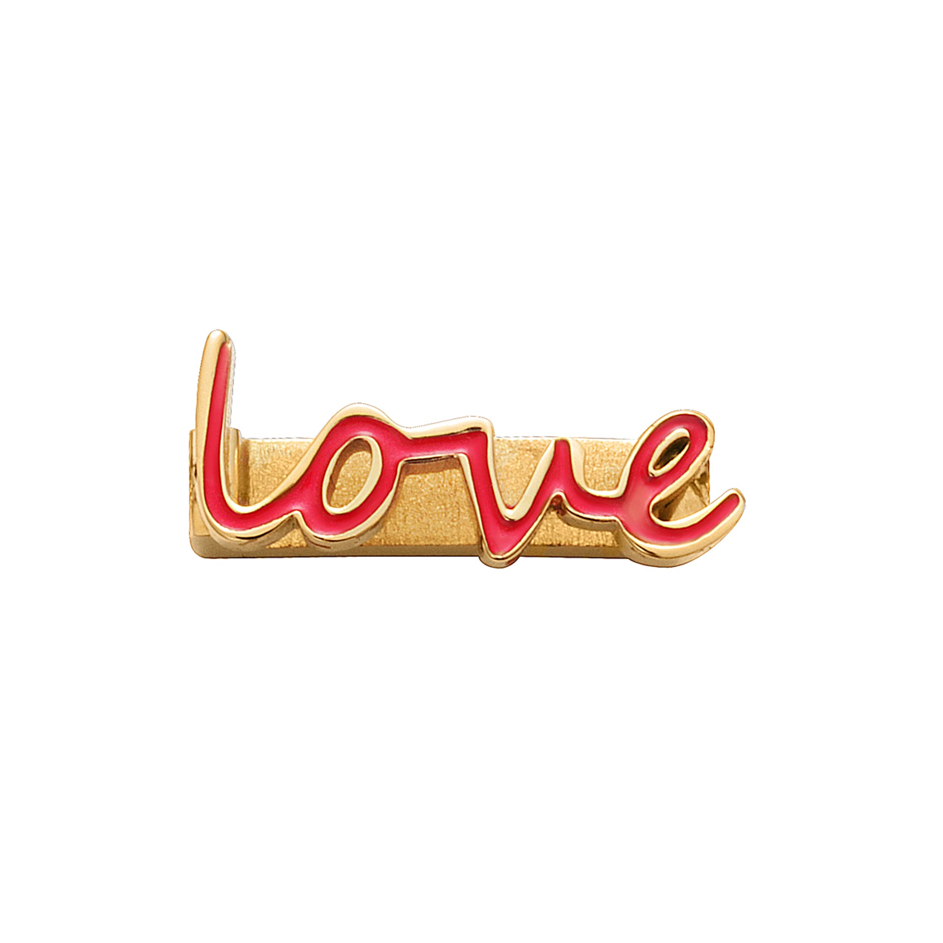 Motif en acier IP doré avec le mot love en émail rouge à monter sur un bracelet personnalisable