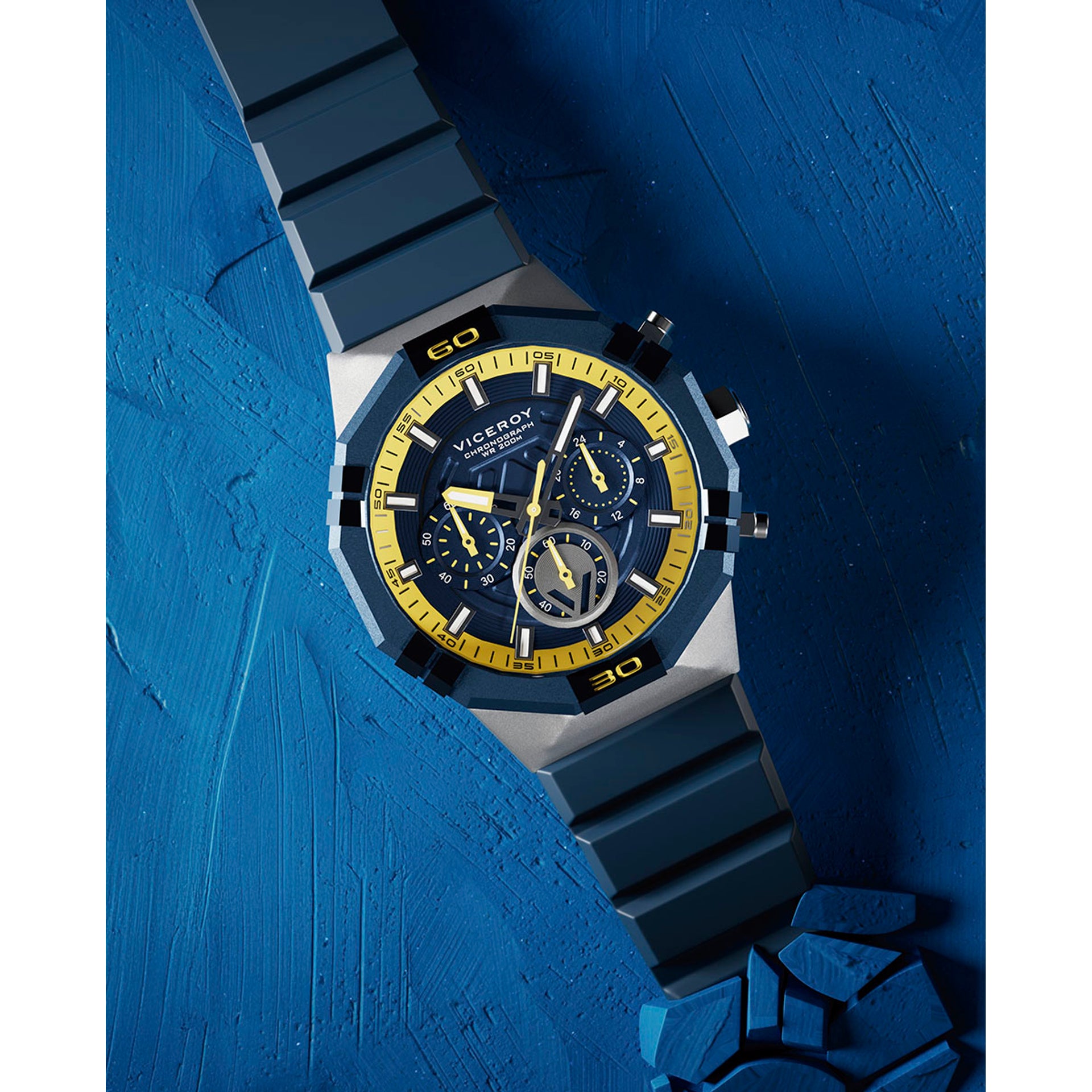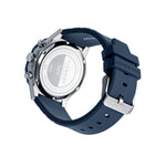Bracelet homme en acier et cuir tressé bleu avec détail en cuir vert