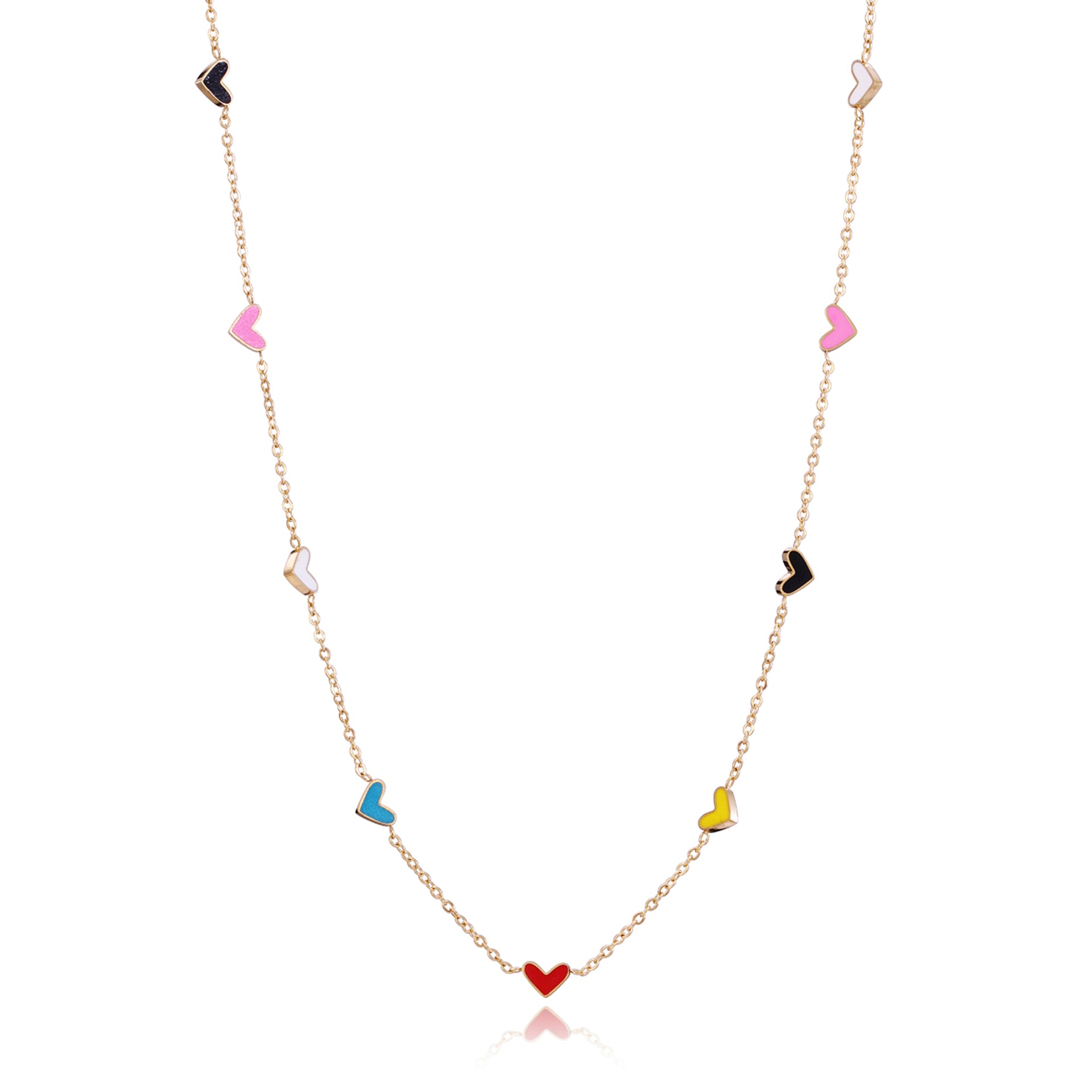 Collier Love en acier Ip doré avec coeurs et émaux colorés