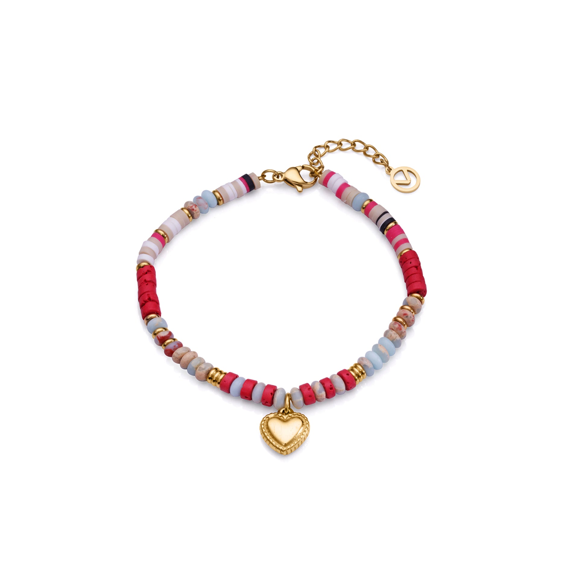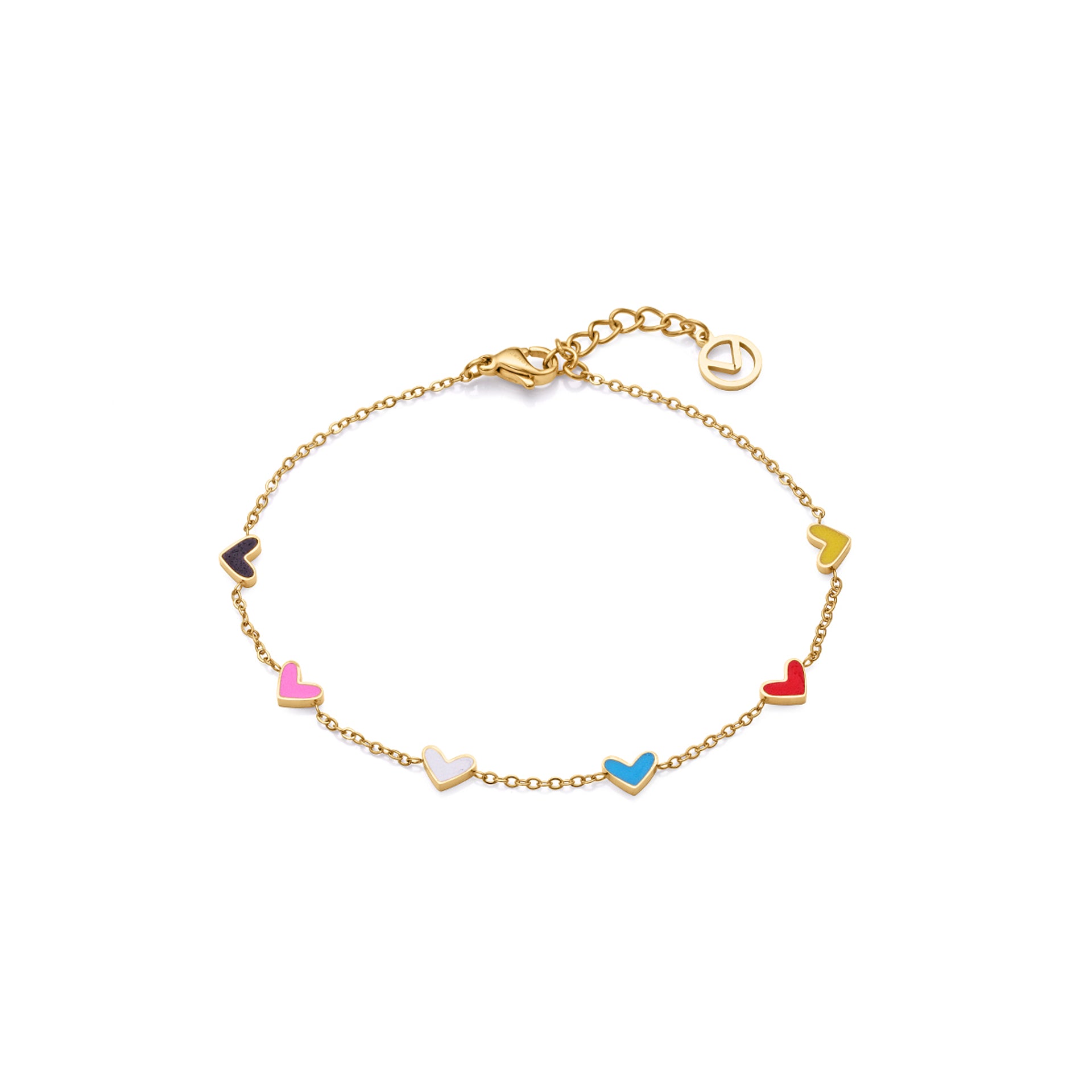 Bracelet Love en acier Ip doré avec coeurs et émail coloré