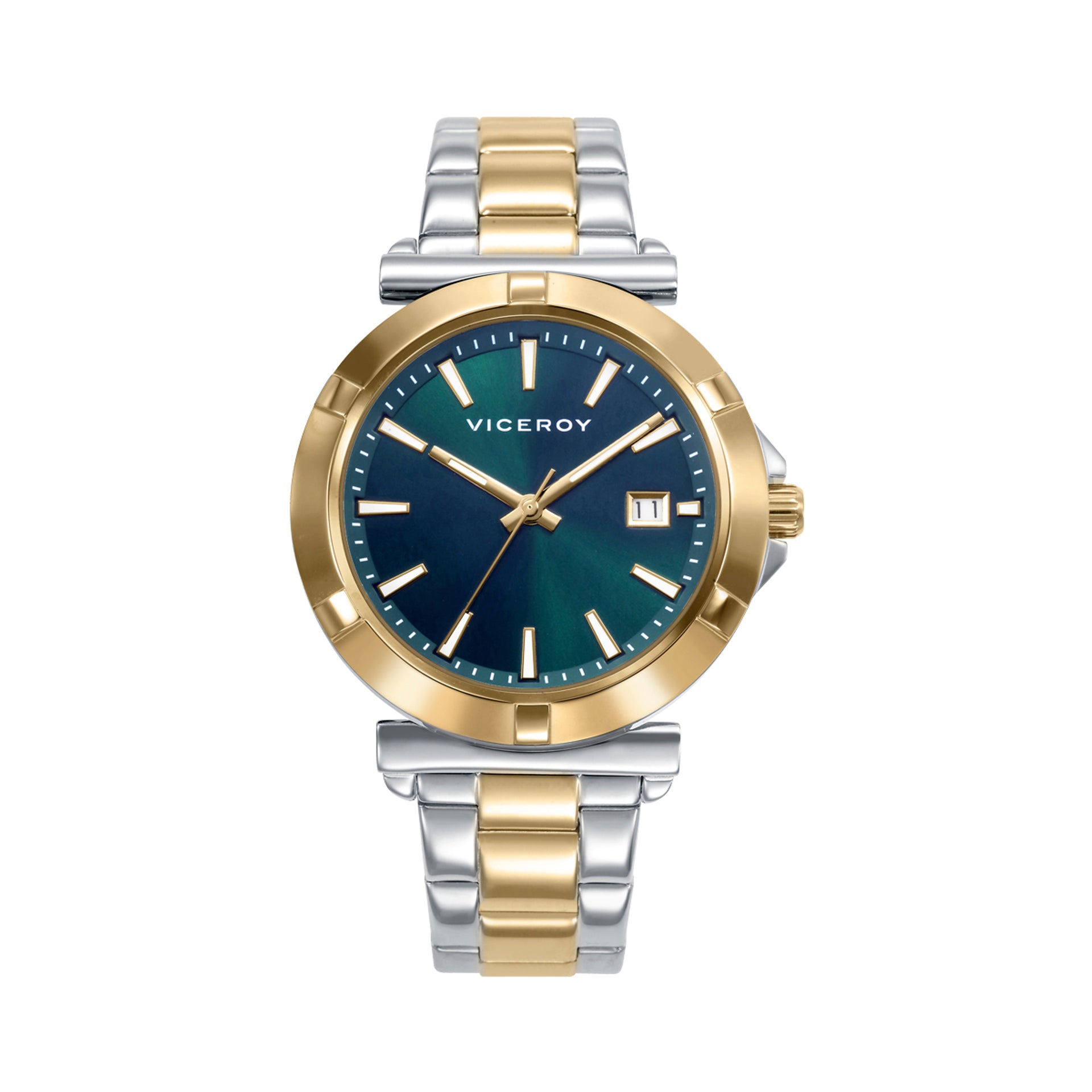 Montre bicolore verte IP 20 ATM boîtier en acier, bracelet en acier, mouvement à quartz