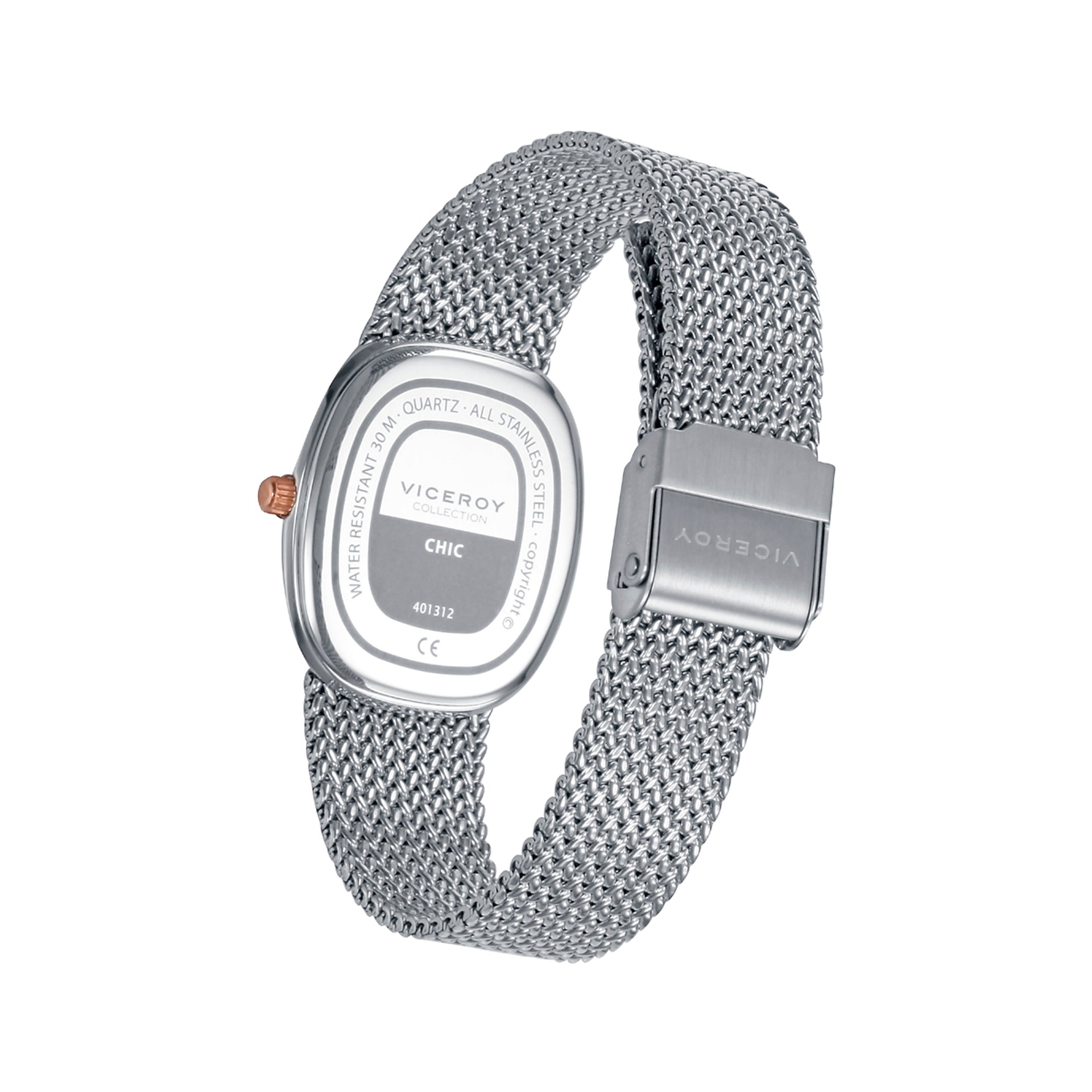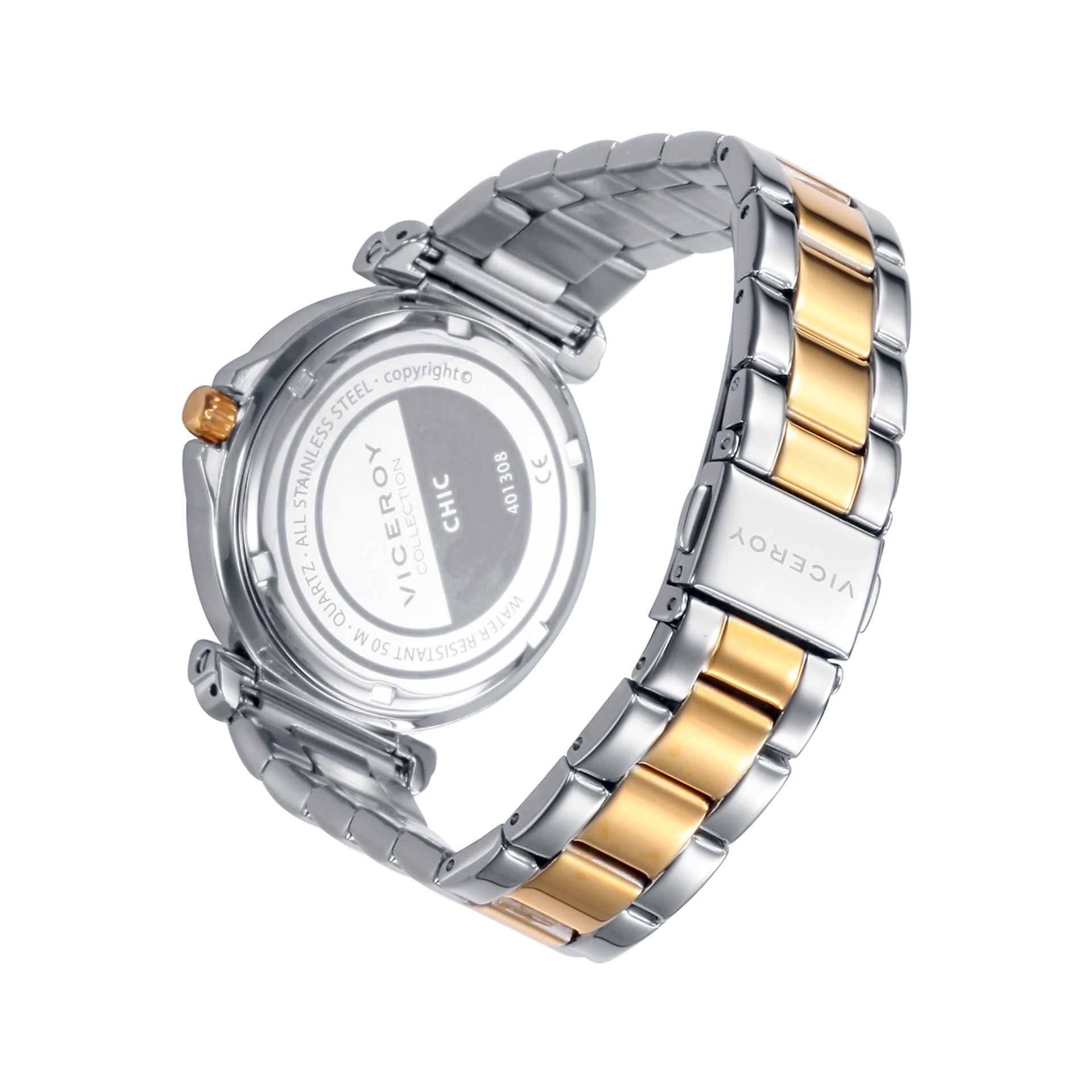 Boîtier de montre bicolore en acier rose IP 20 ATM, bracelet en acier, mouvement à quartz