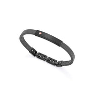 Anillo de hombre de acero Ip negro con tornillo de oro rosa 9k