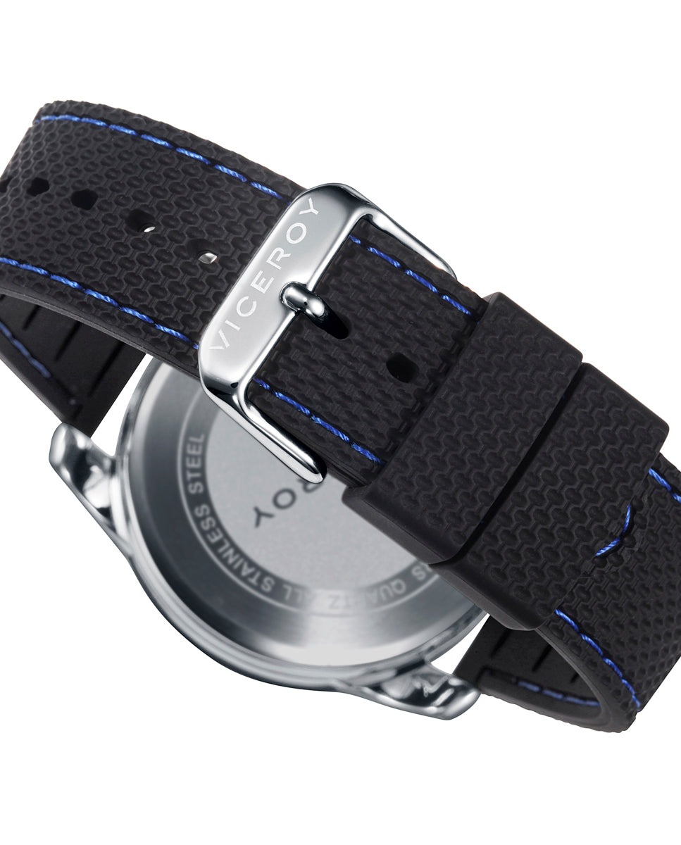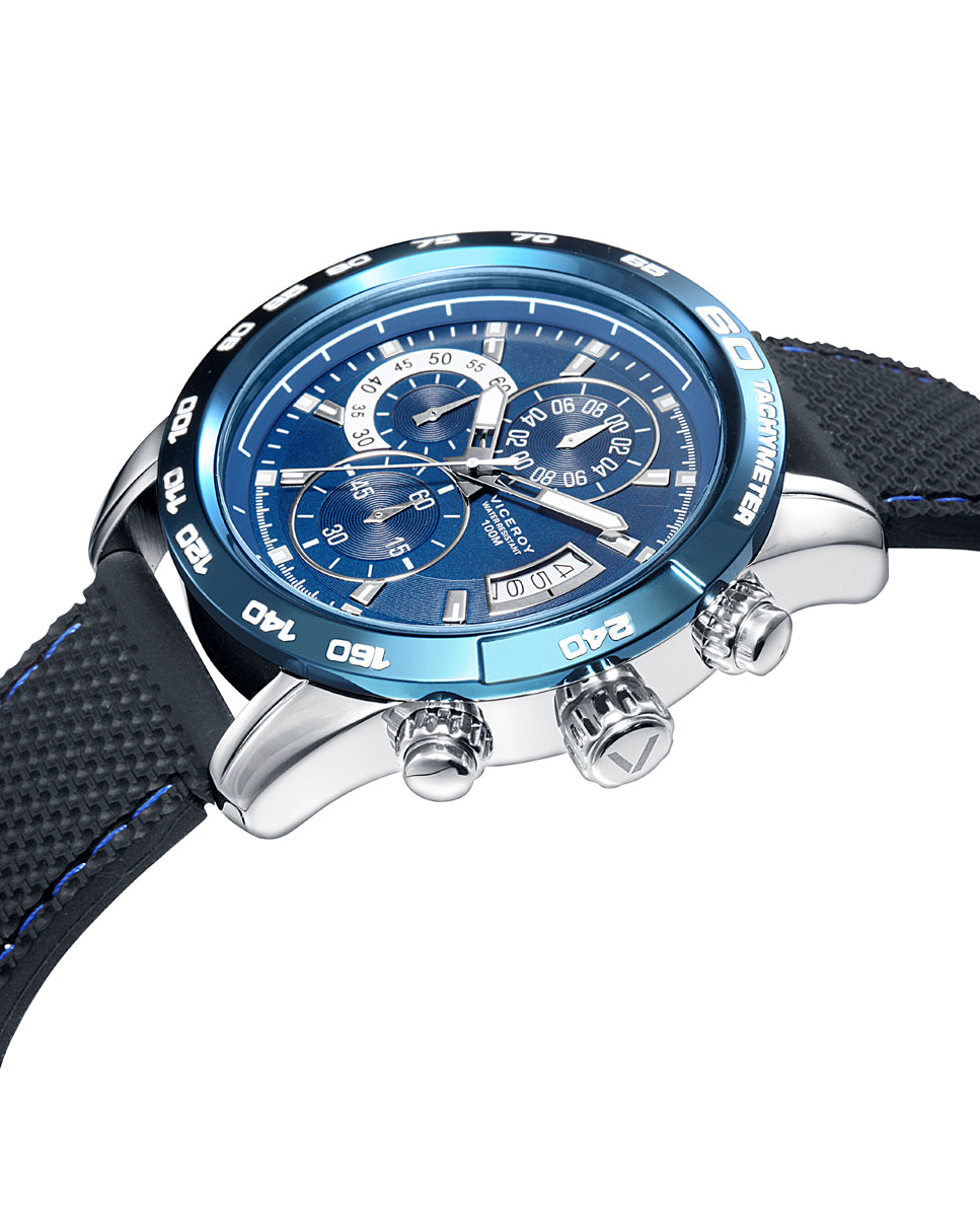 Montre pour homme en acier chronographe Heat avec IP bleu et bracelet en silicone noir