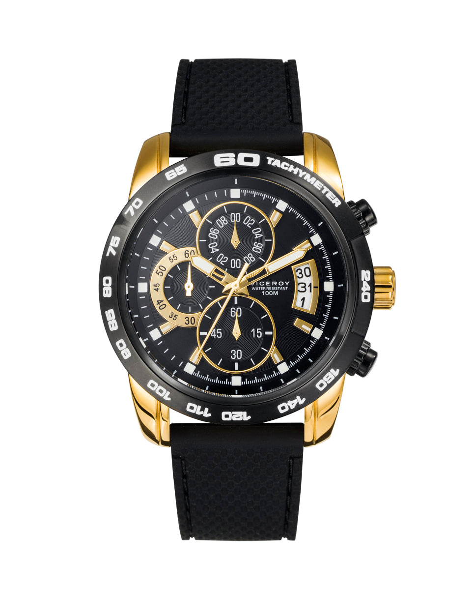 Montre pour homme en acier chronographe Heat avec IP doré et bracelet en silicone noir