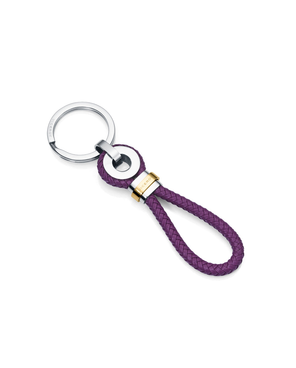 Porte-clés Air en acier Ip doré et cuir tressé violet