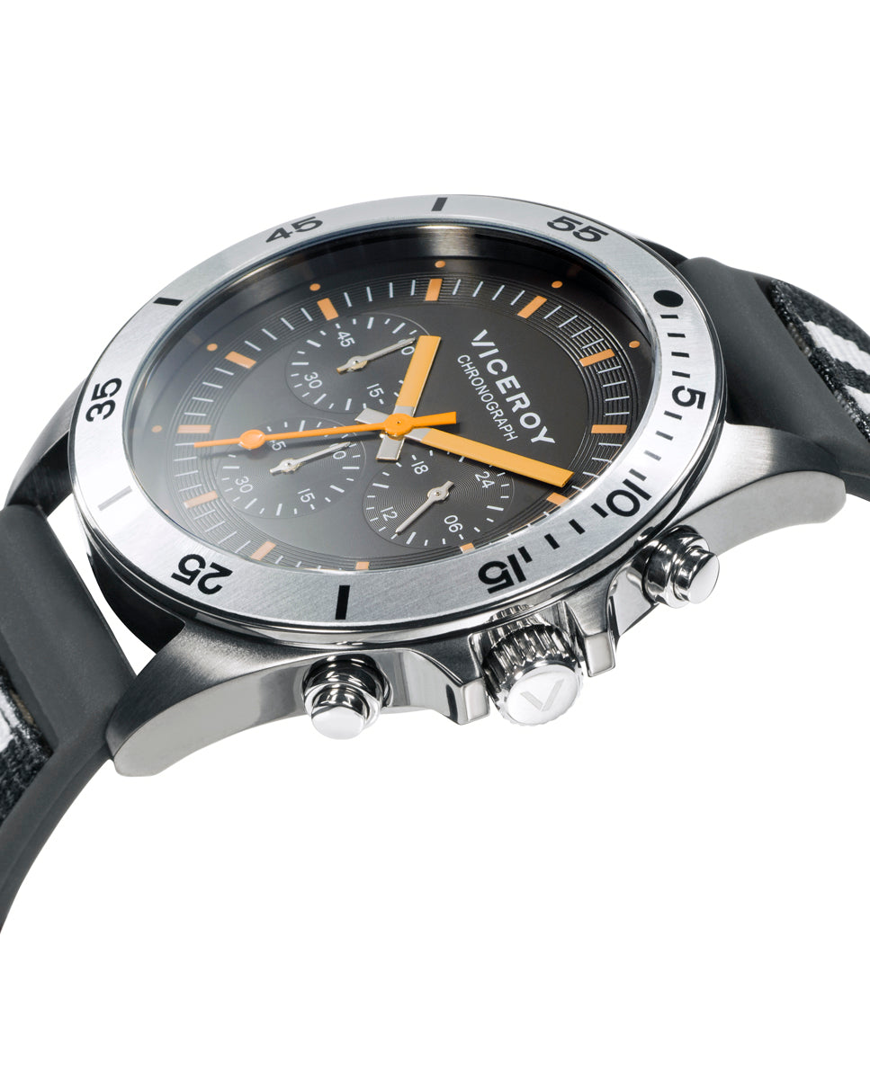Montre pour homme chronographe Beat en acier avec IP gris avec bracelet en nylon et silicone
