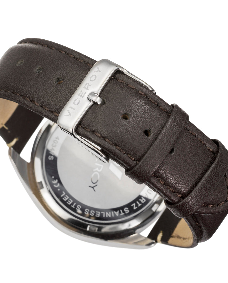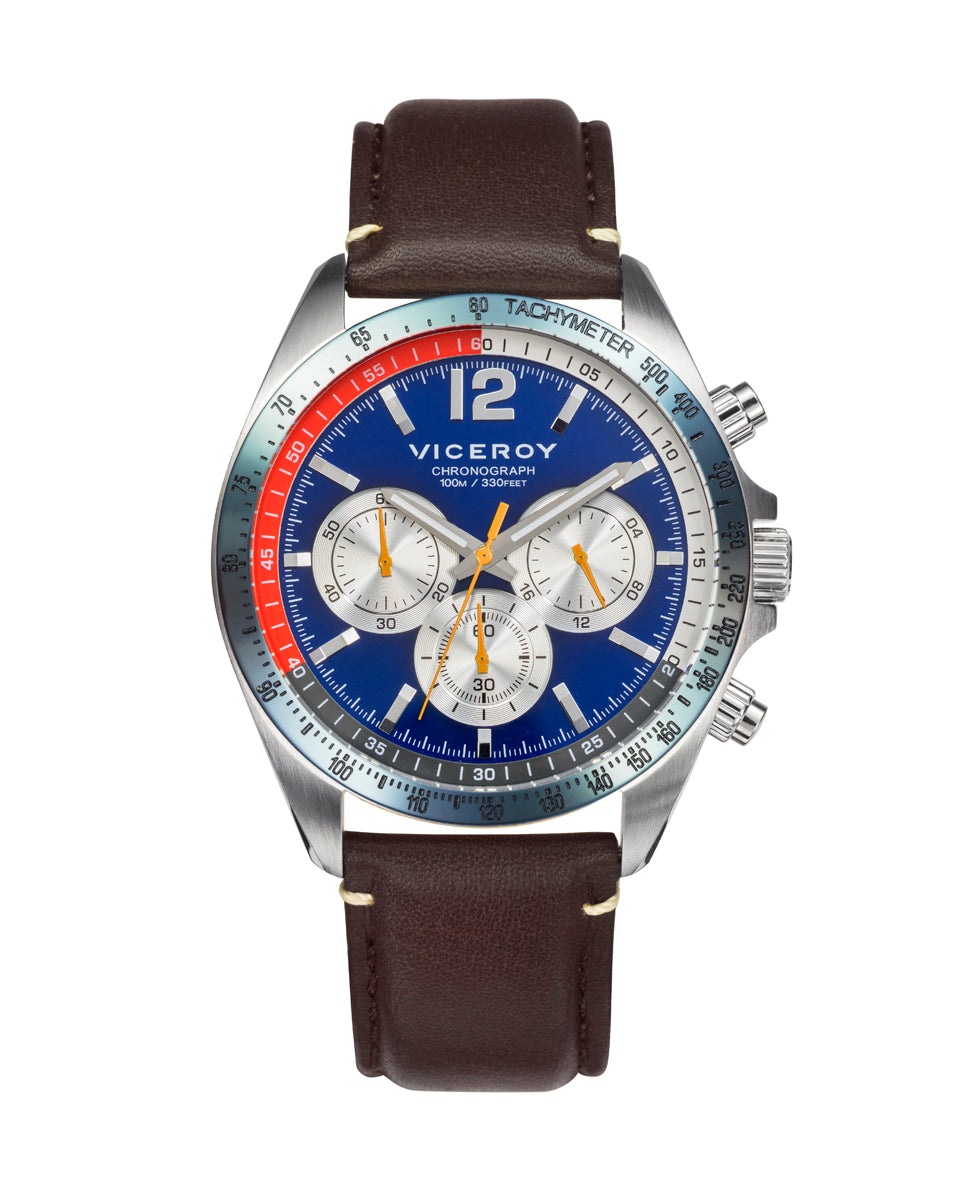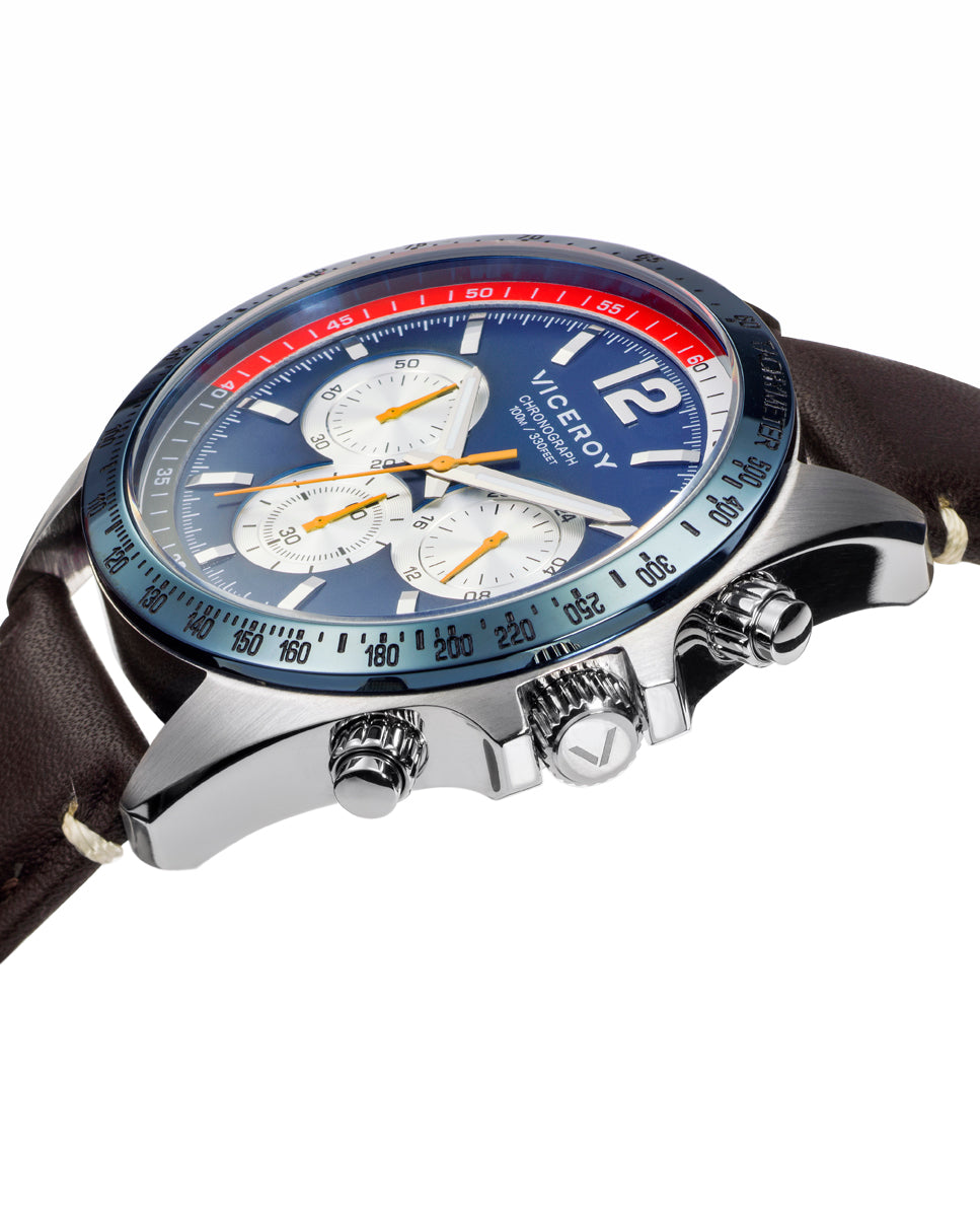 Montre pour homme en acier chronographe Magnum avec IP bleu et bracelet en cuir marron