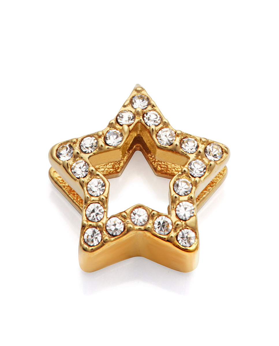 Motif en acier IP doré et zircons en forme d'étoile à monter sur un bracelet personnalisable fille