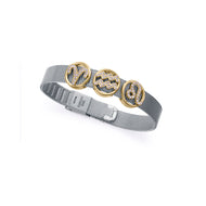 Motif Horoscope Balance pour femme en acier Ip doré avec zircons