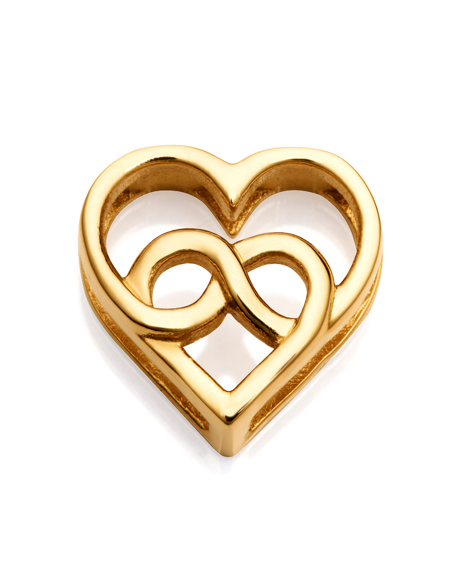 Motif en acier IP doré avec deux coeurs entrelacés à monter sur un bracelet femme personnalisable