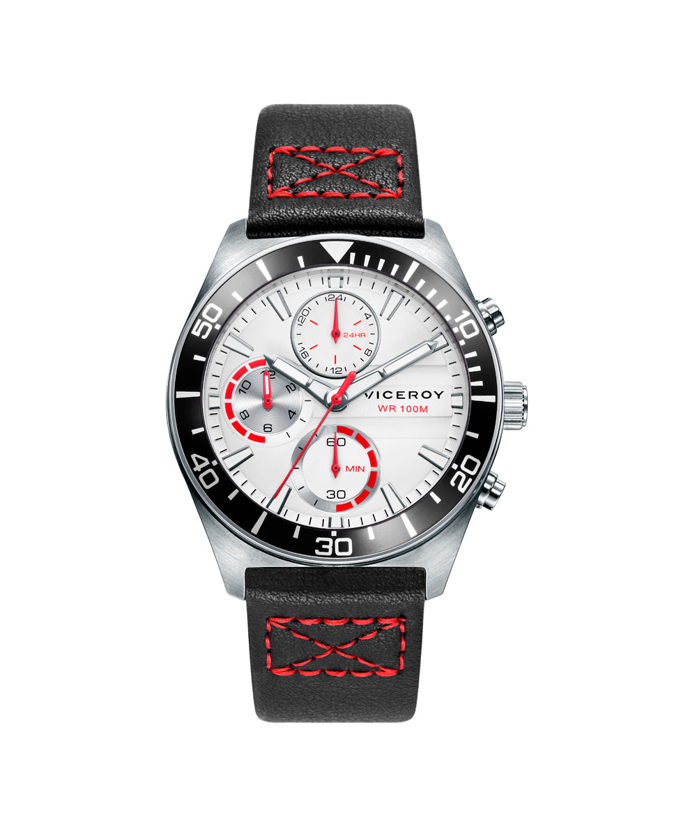 Montre multifonction pour garçon Viceroy Next en acier et bracelet en cuir synthétique noir