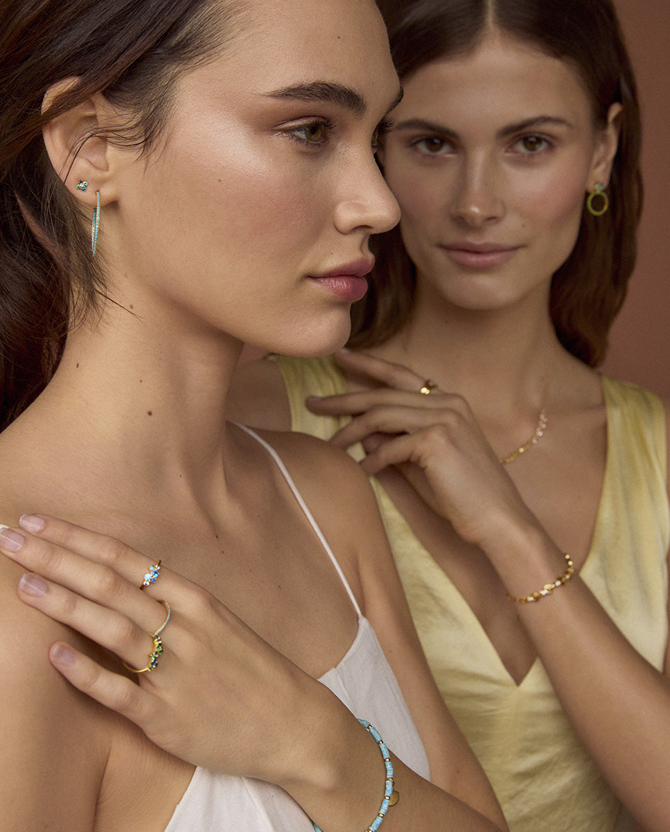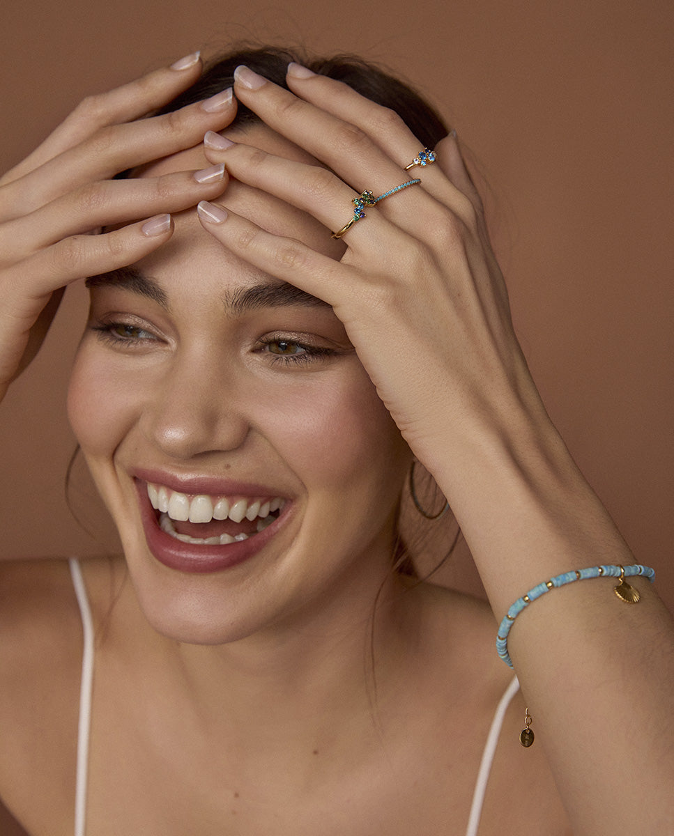 Bracelet tendance en argent sterling plaqué or avec pierres bleues et coquillage