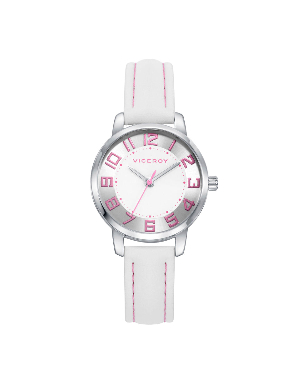 Montre pour fille avec bracelet blanc et cadran blanc avec lunette argentée. Bracelet en cordon de nylon rose avec motif arbre de vie en argent sterling cadeau.