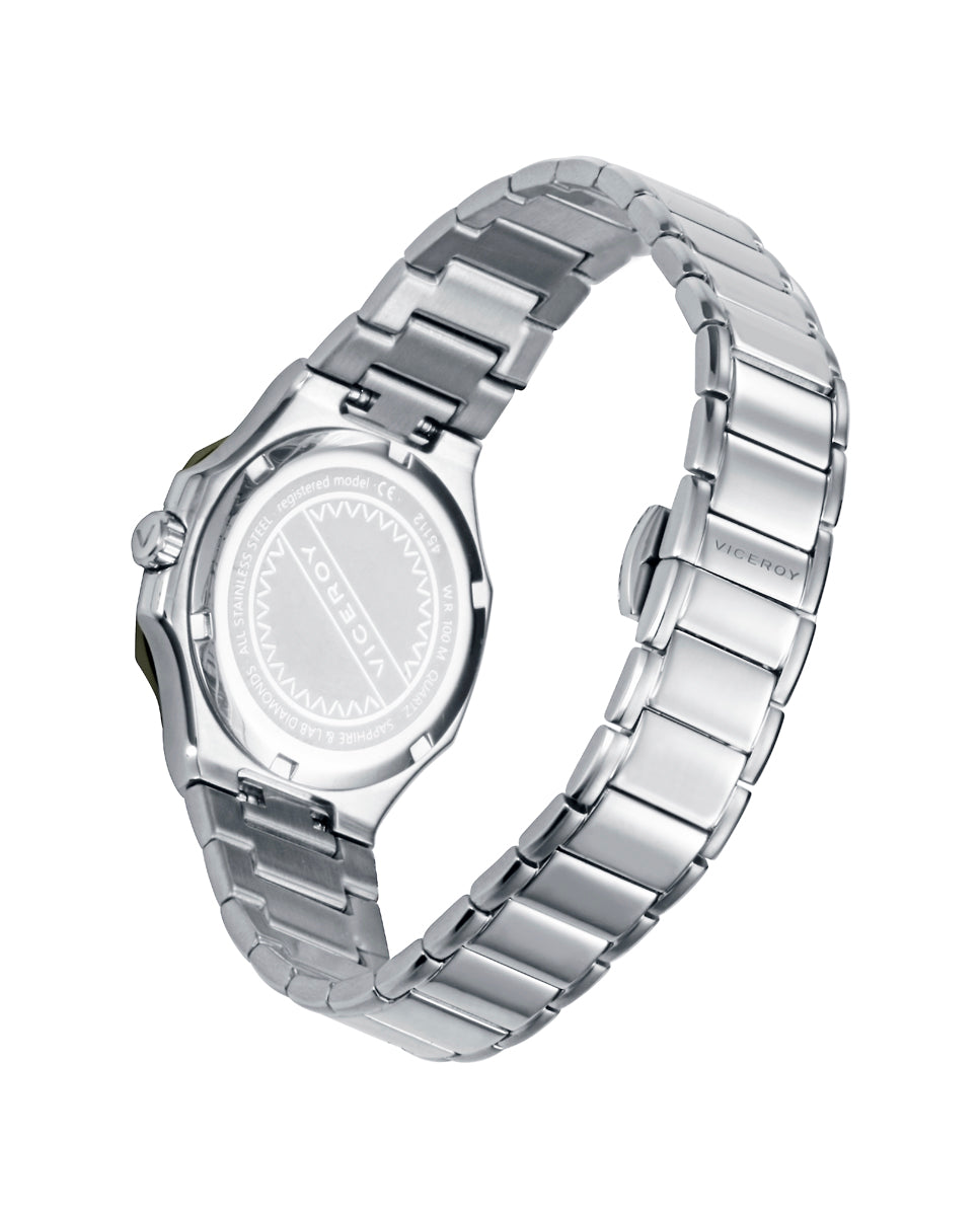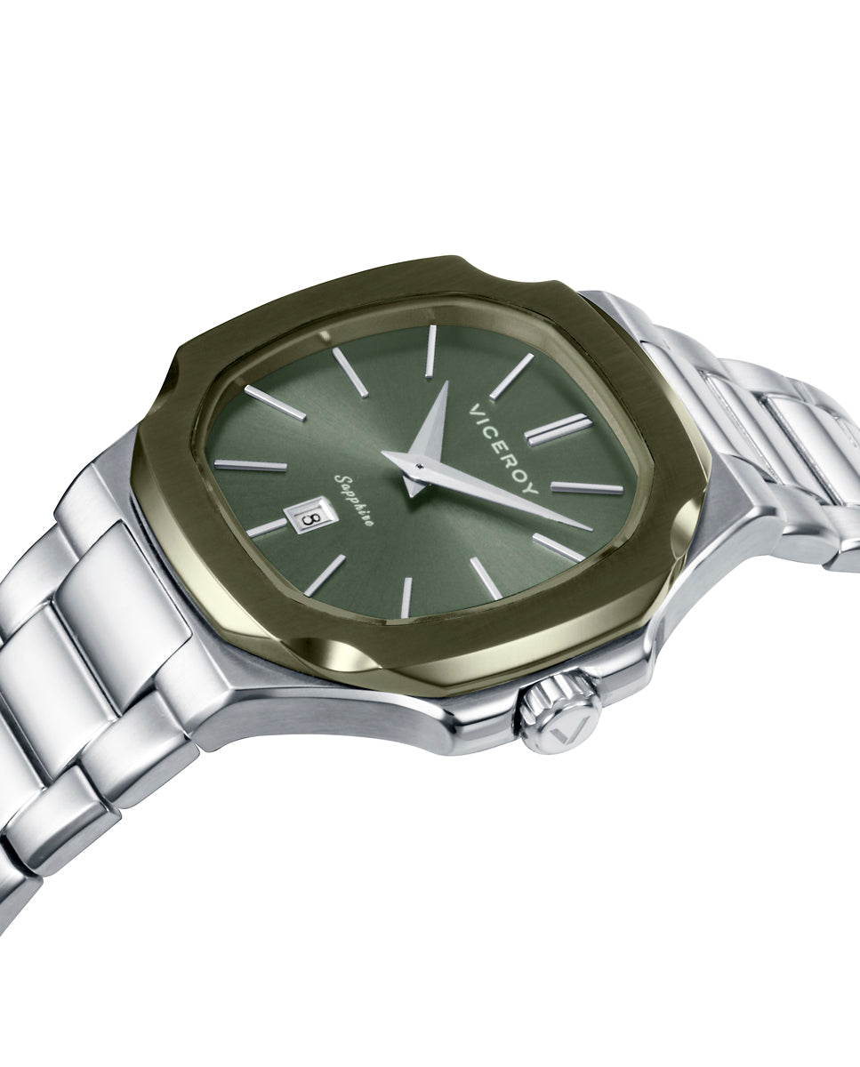Reloj caja bitono de acero e Ip verde 10 Atm, brazalete de acero, movimiento cuarzo, colección Laura Escanes