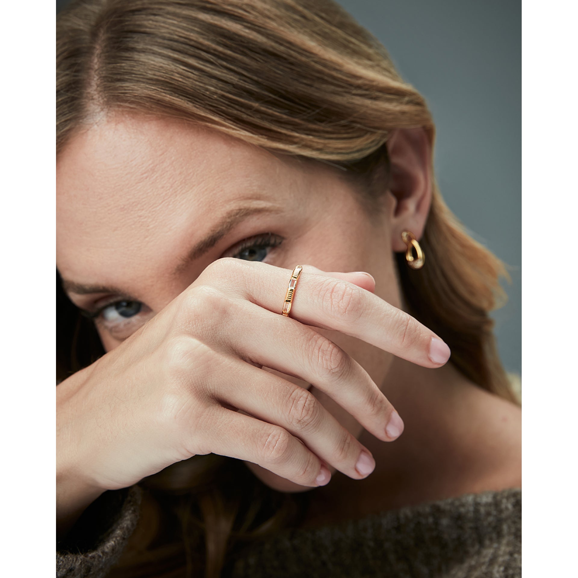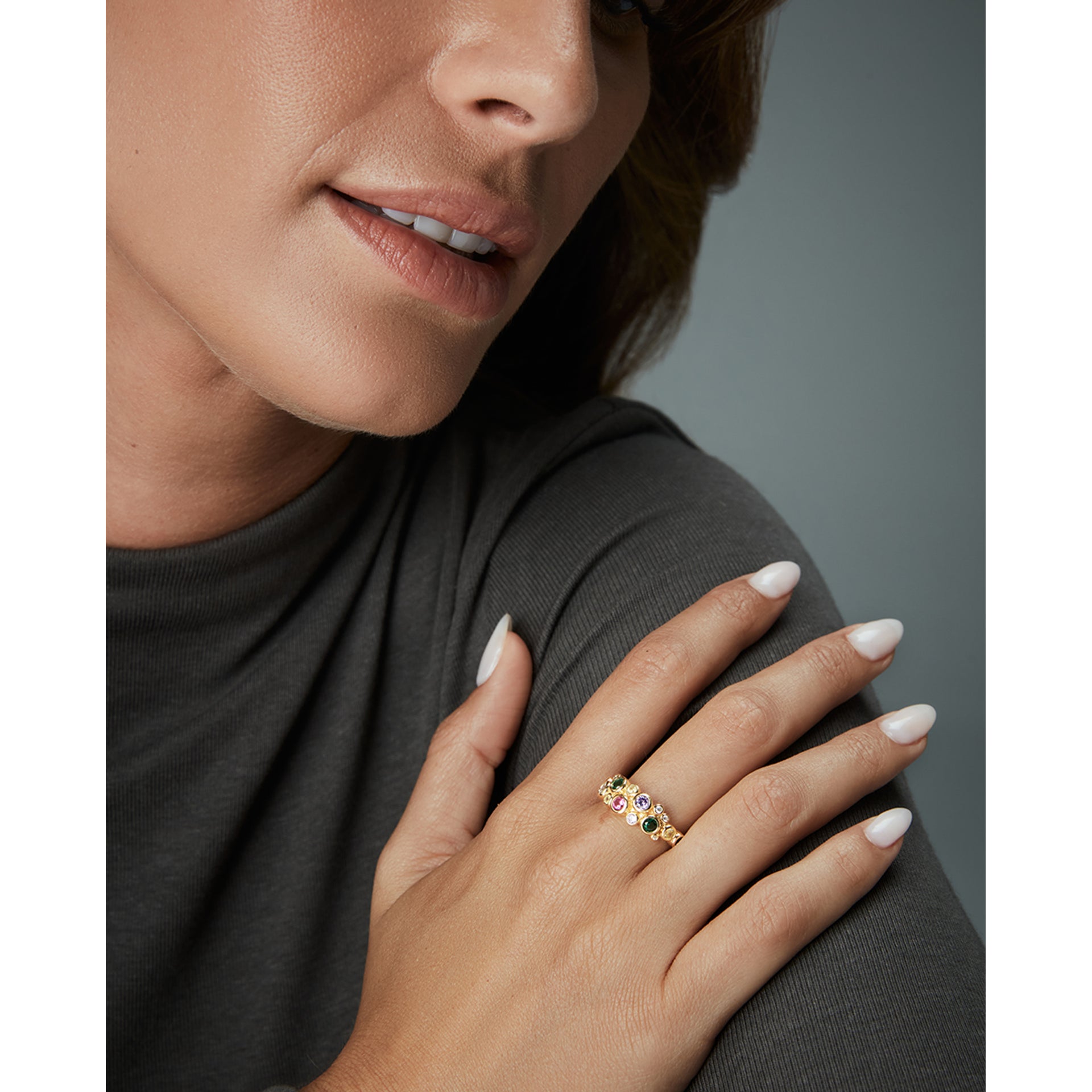 Un'elegante fede nuziale o un design sofisticato realizzato con pietre naturali.