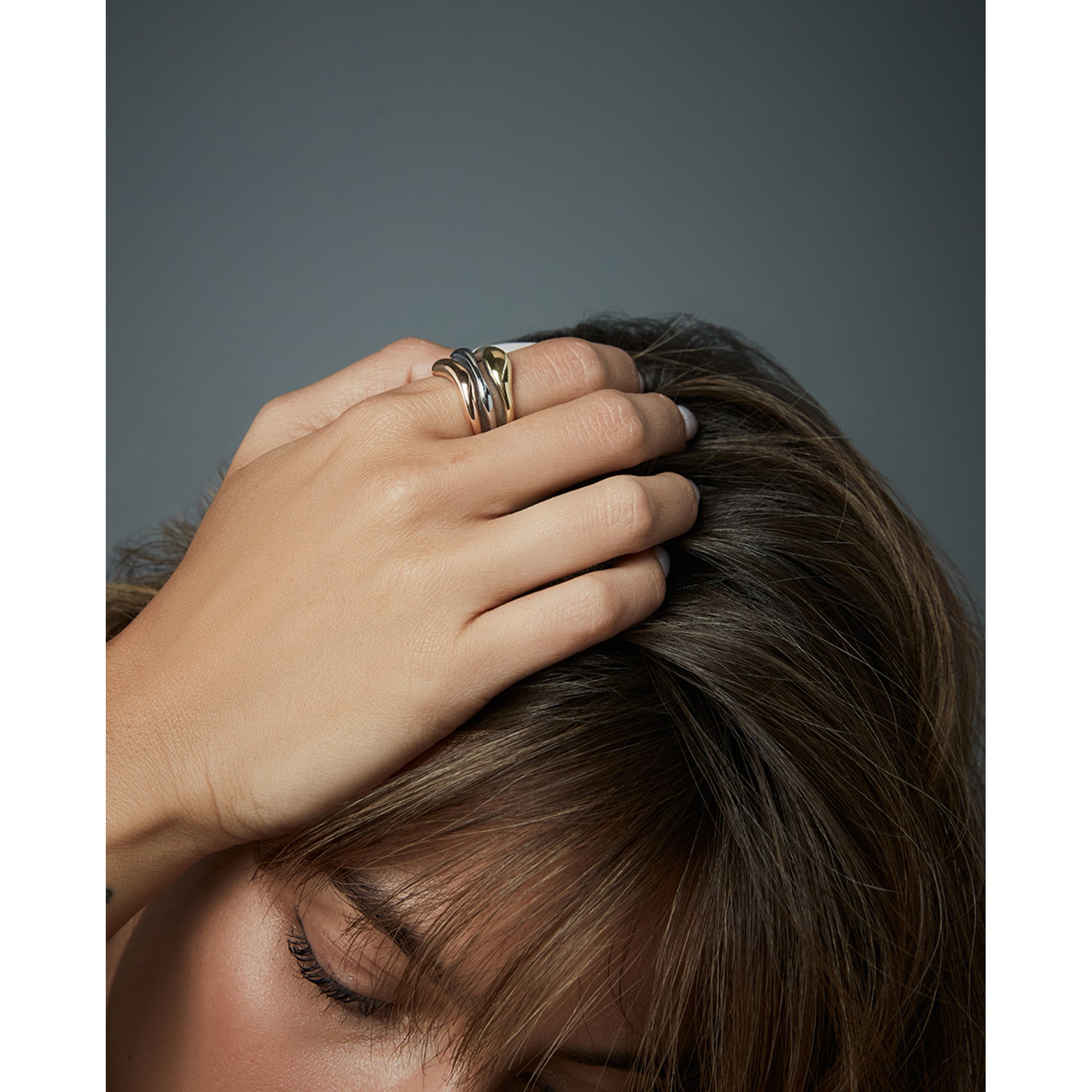 Tres anillos de mujer de acero en tres tonos