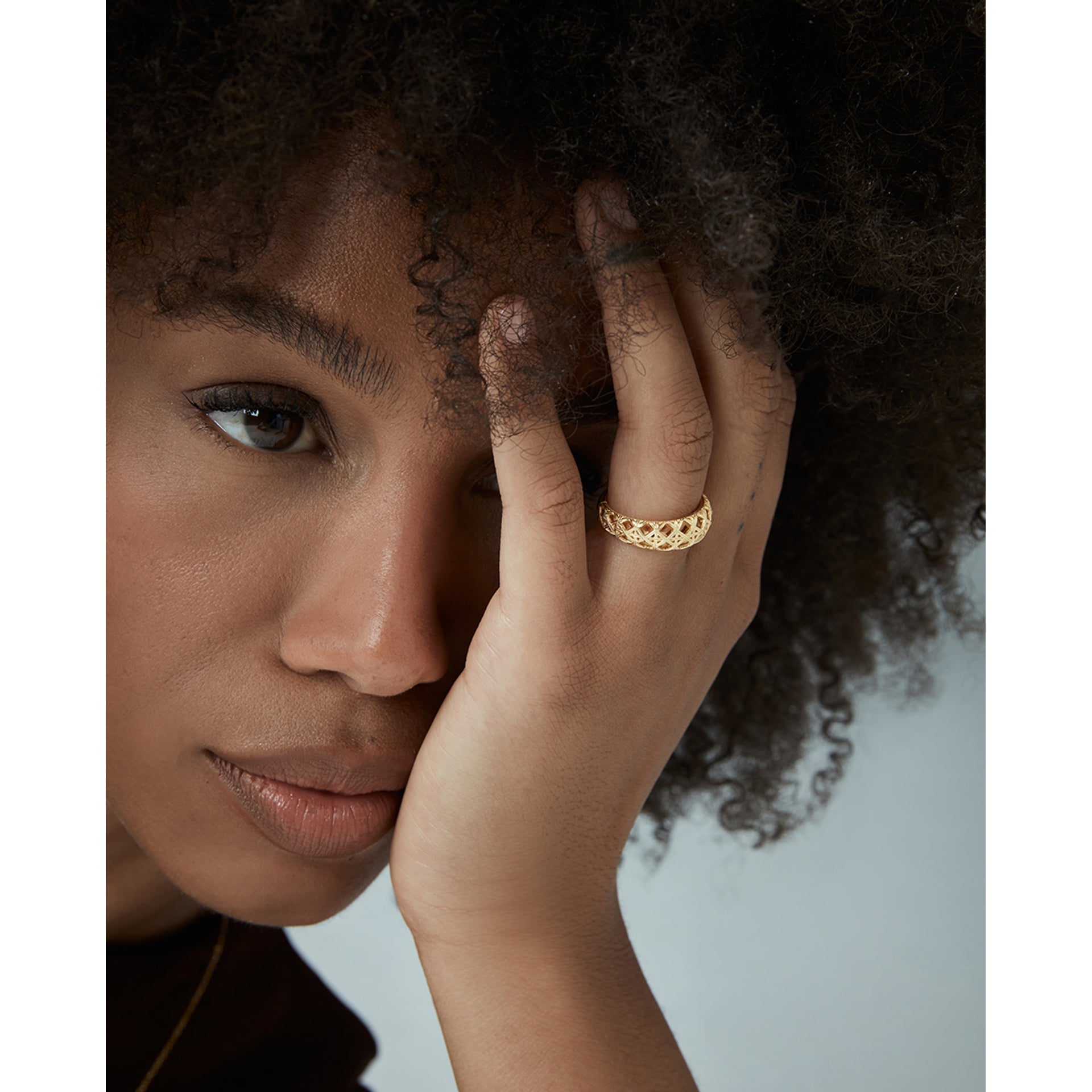 Anillo de plata de primera ley con baño de oro diseño calado