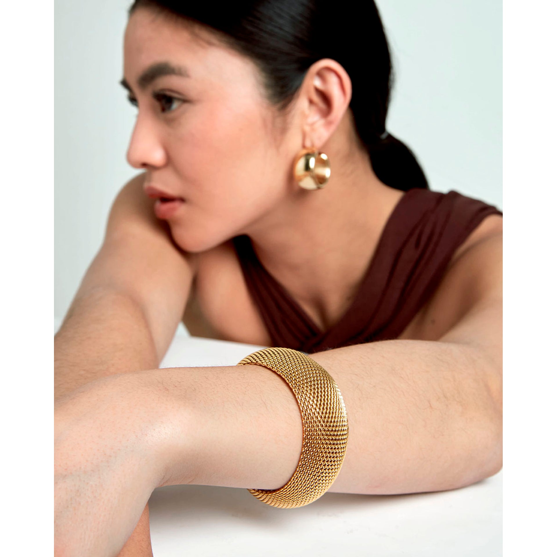 Bracciale da donna dal volume rigido in acciaio e Ip dorato
