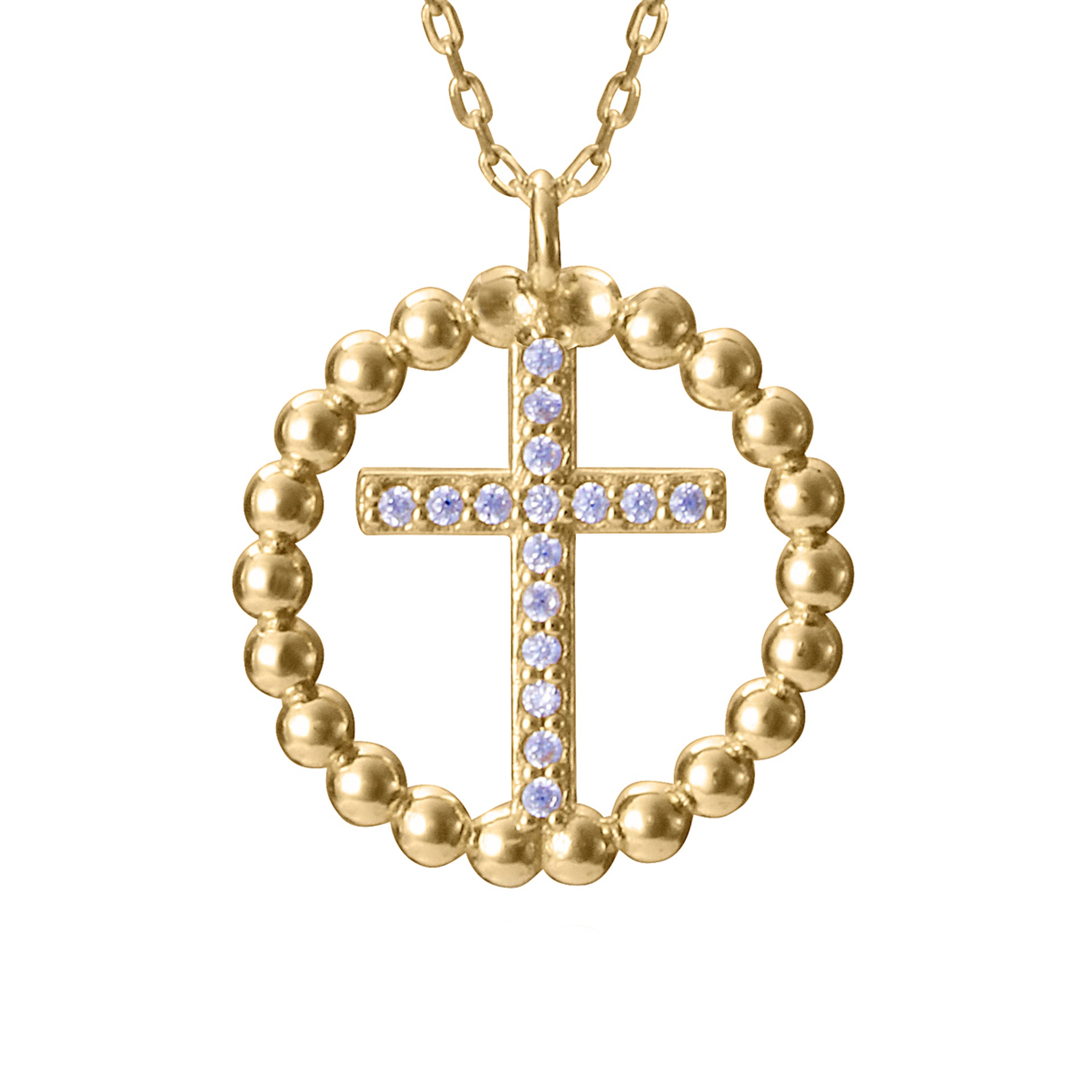 Collana da bambina in argento 925 placcato oro con croce con zirconi