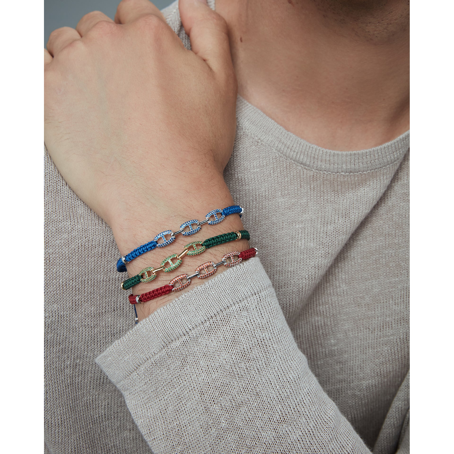 Bracciale da uomo in acciaio con maglie incrociate