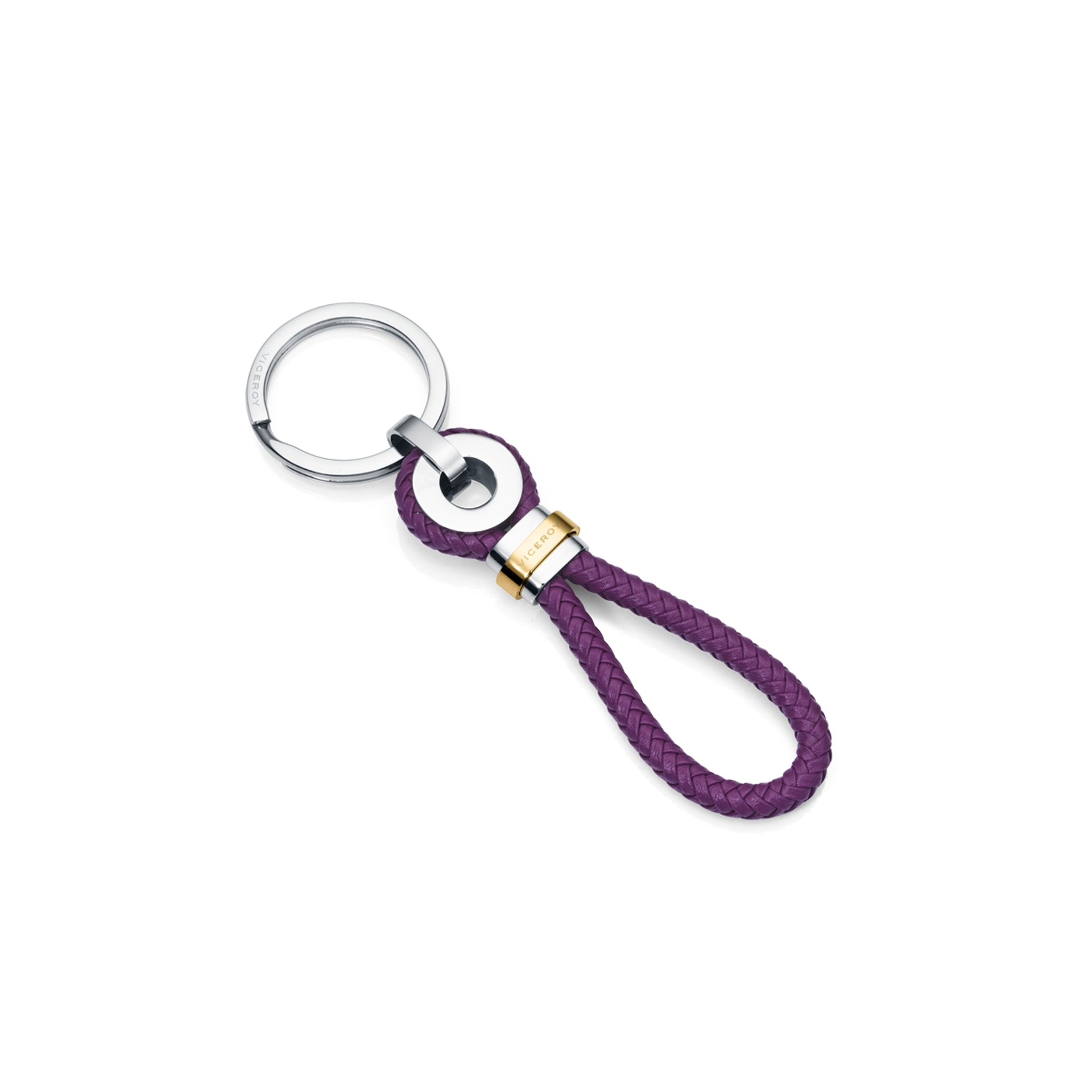 Portachiavi Air in acciaio Ip oro e pelle intrecciata viola