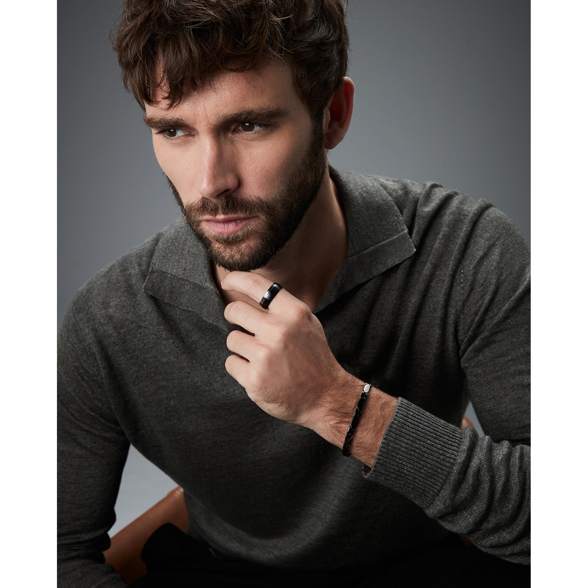 Bracciale da uomo in acciaio e pelle nera con smalto nero