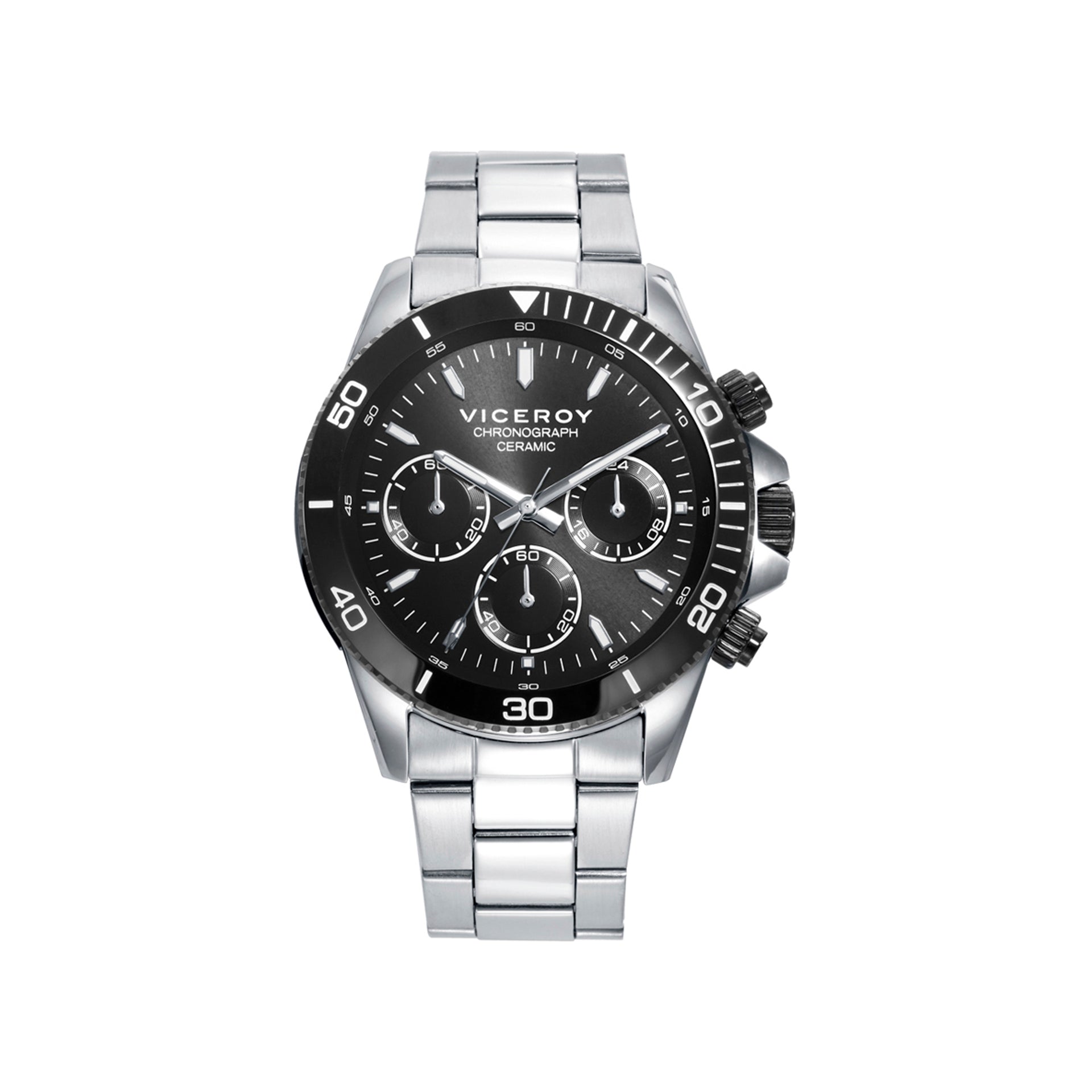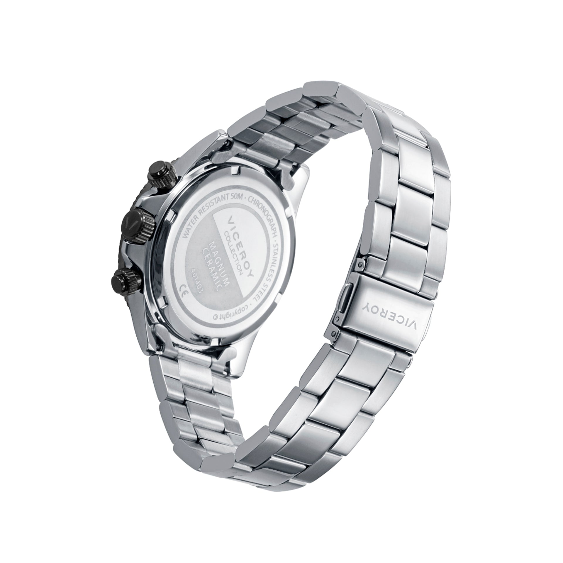 Orologio con cassa in acciaio con lunetta in ceramica nera 5 atm e bracciale in acciaio con movimento al quarzo
