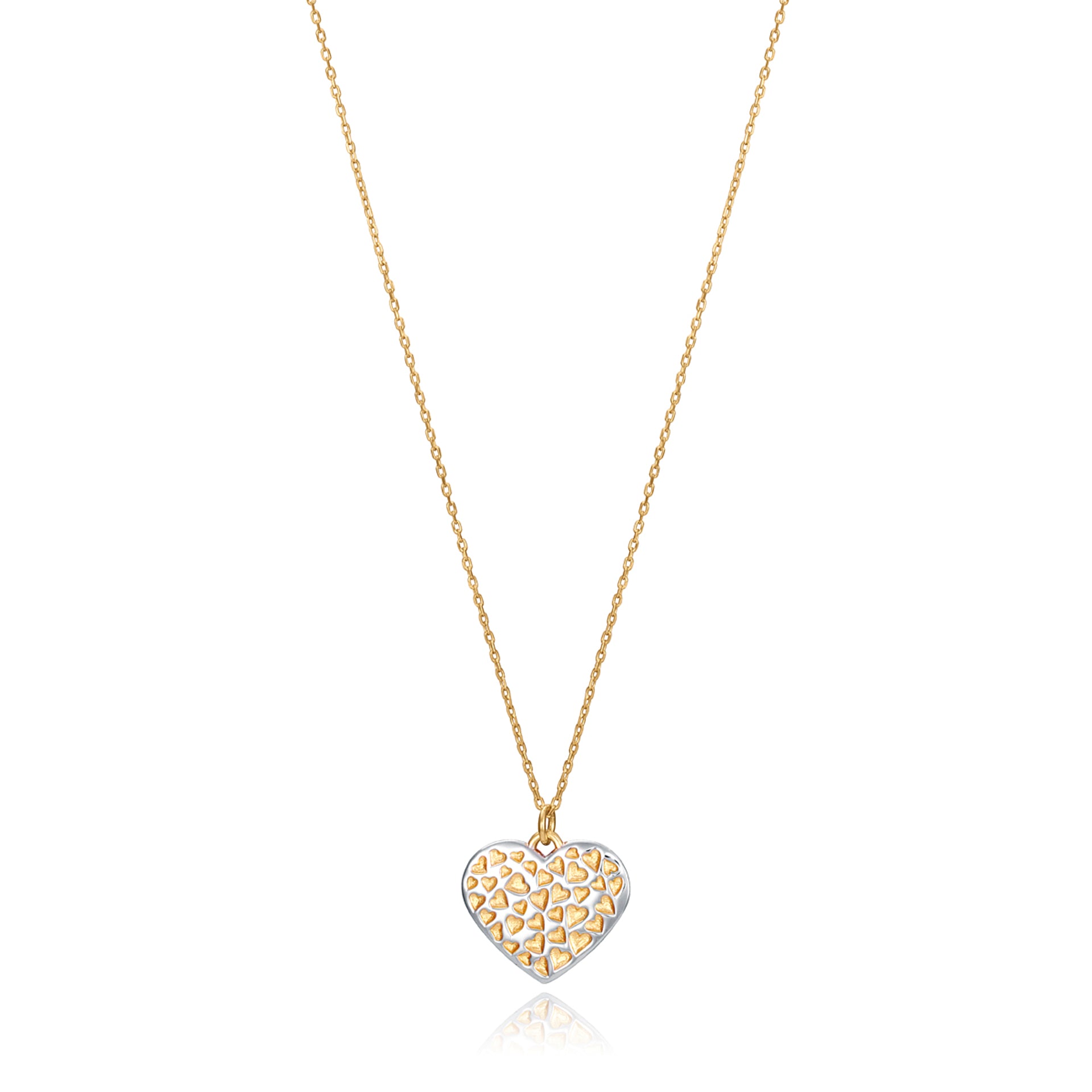 Collana in argento sterling placcato oro con pendente a forma di cuore placcato oro e rodio