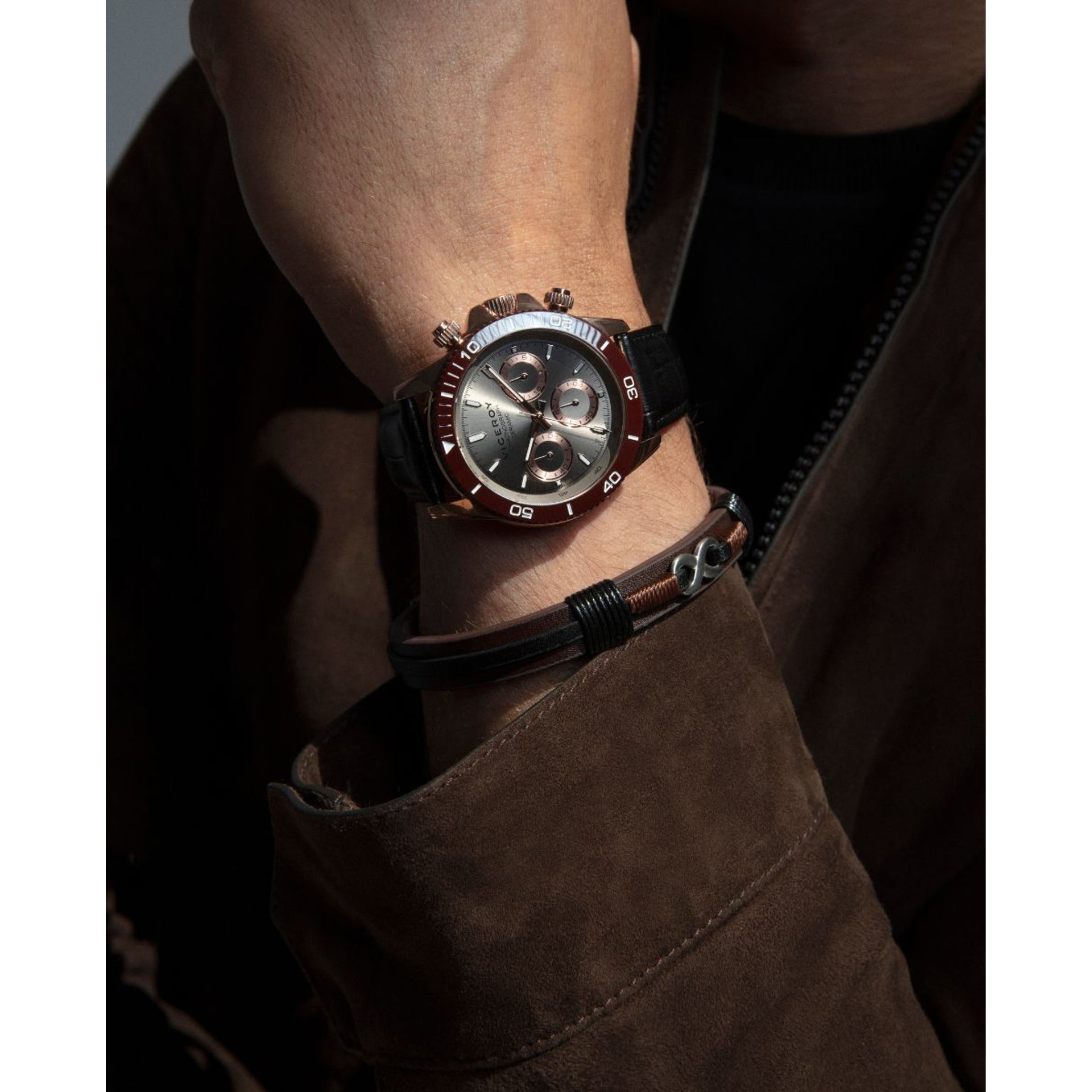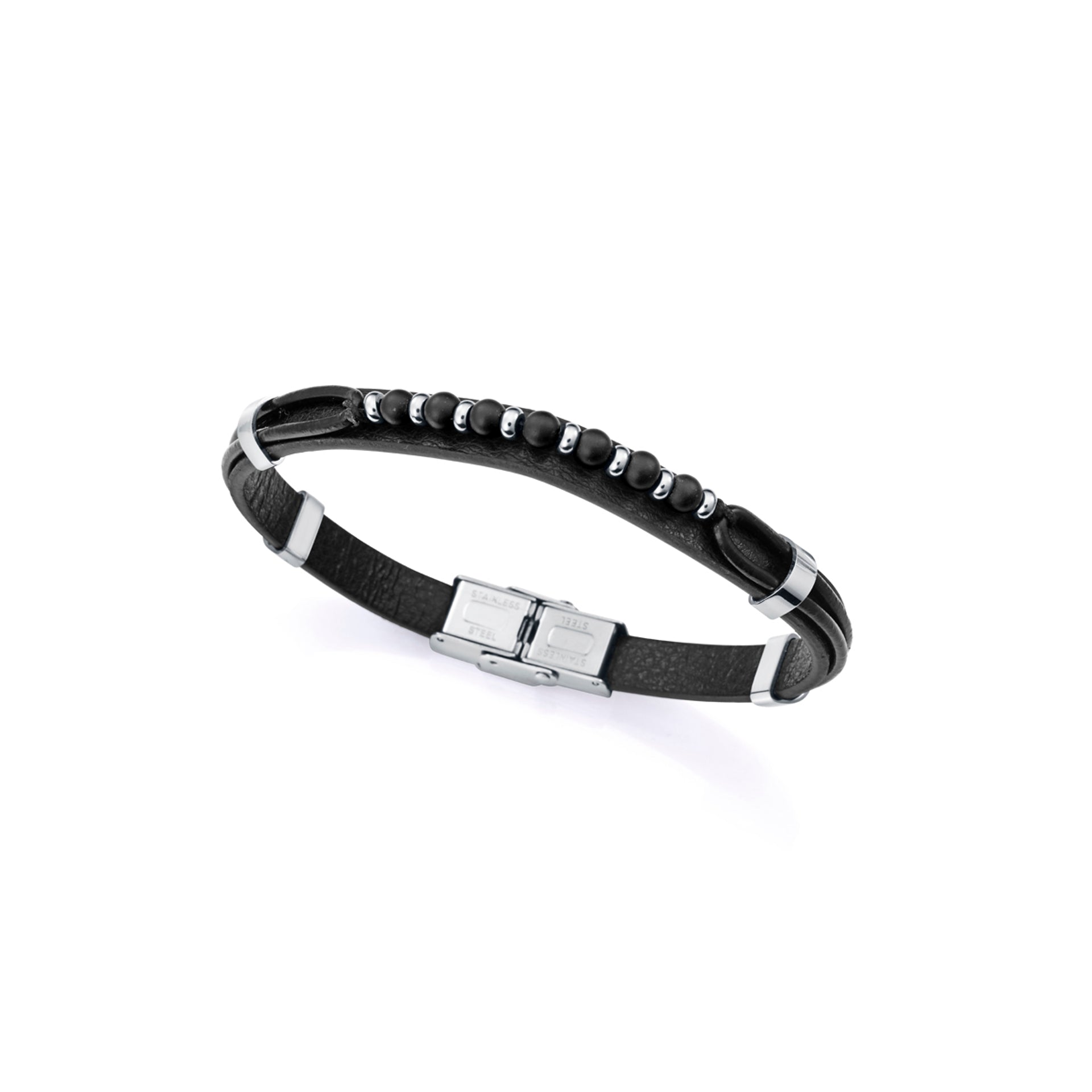 Bracciale da uomo in acciaio e pelle marrone e nera