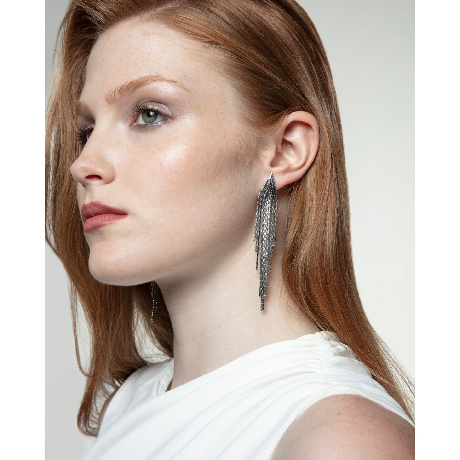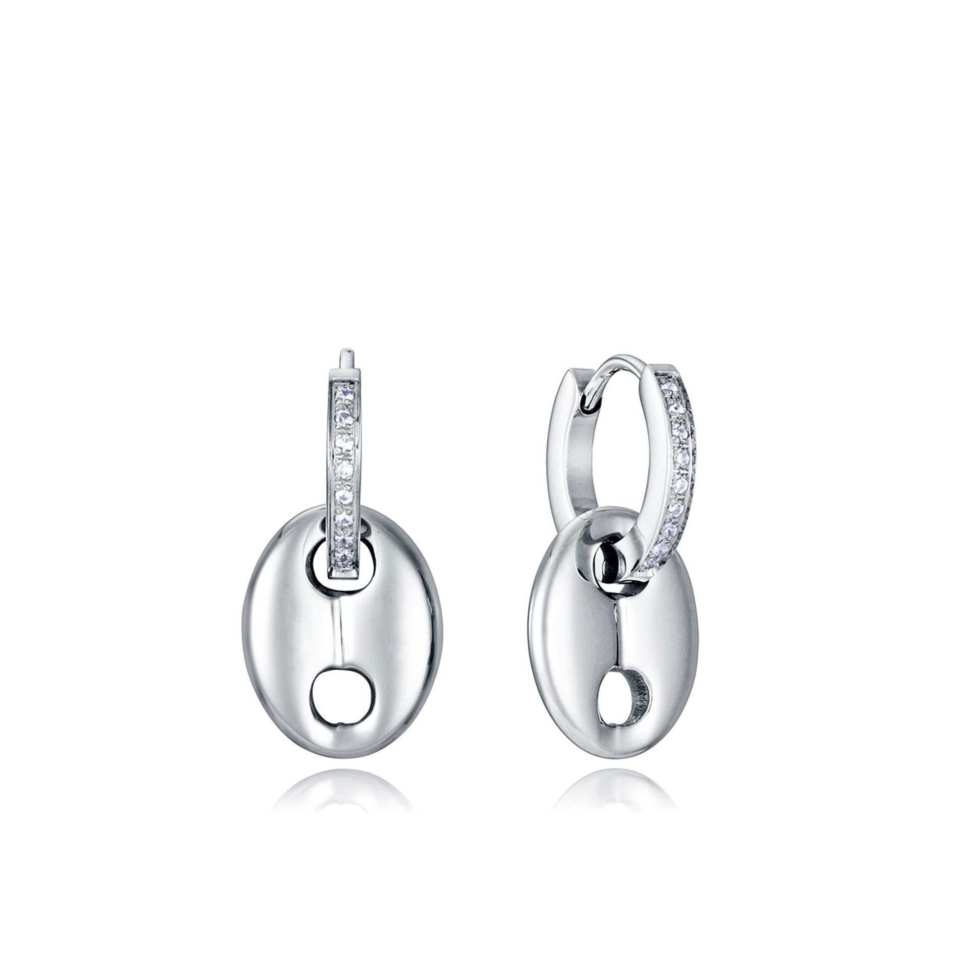Orecchini in acciaio, con zirconi bianchi e maglia pendente, da donna, lunghezza 2 cm.