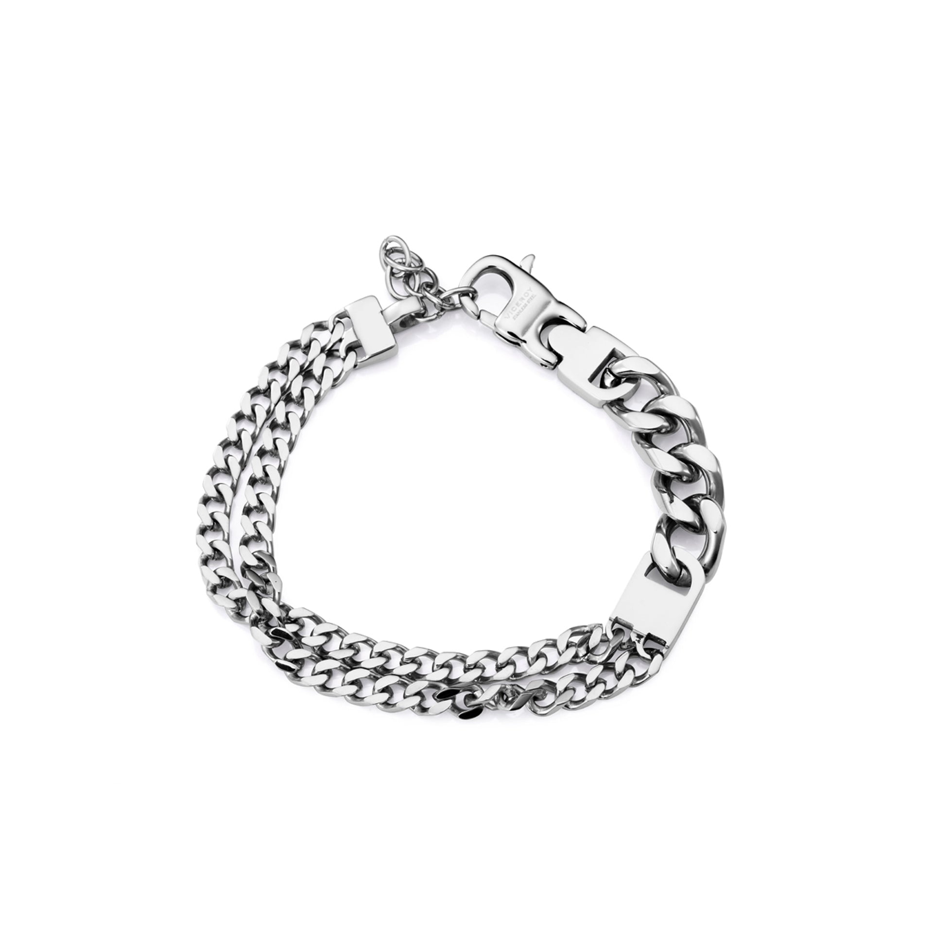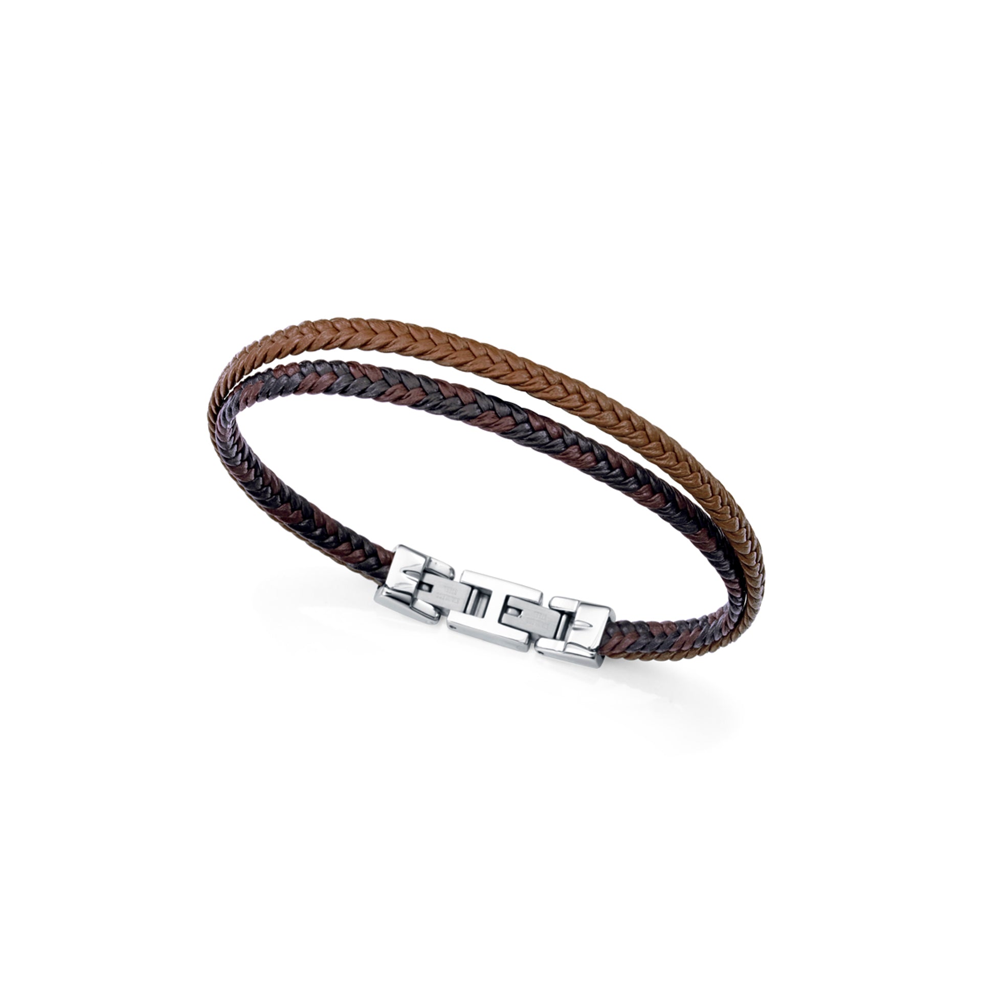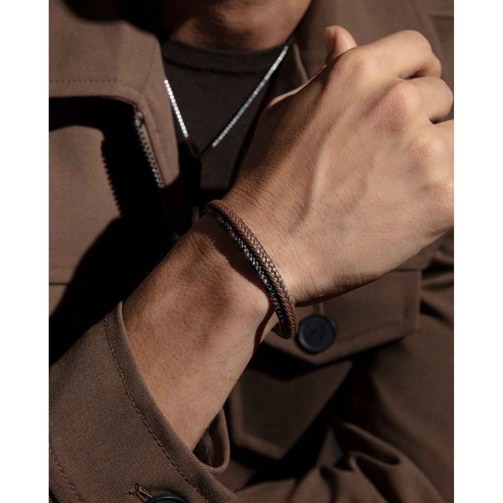 Bracciale doppio da uomo in acciaio e pelle intrecciata