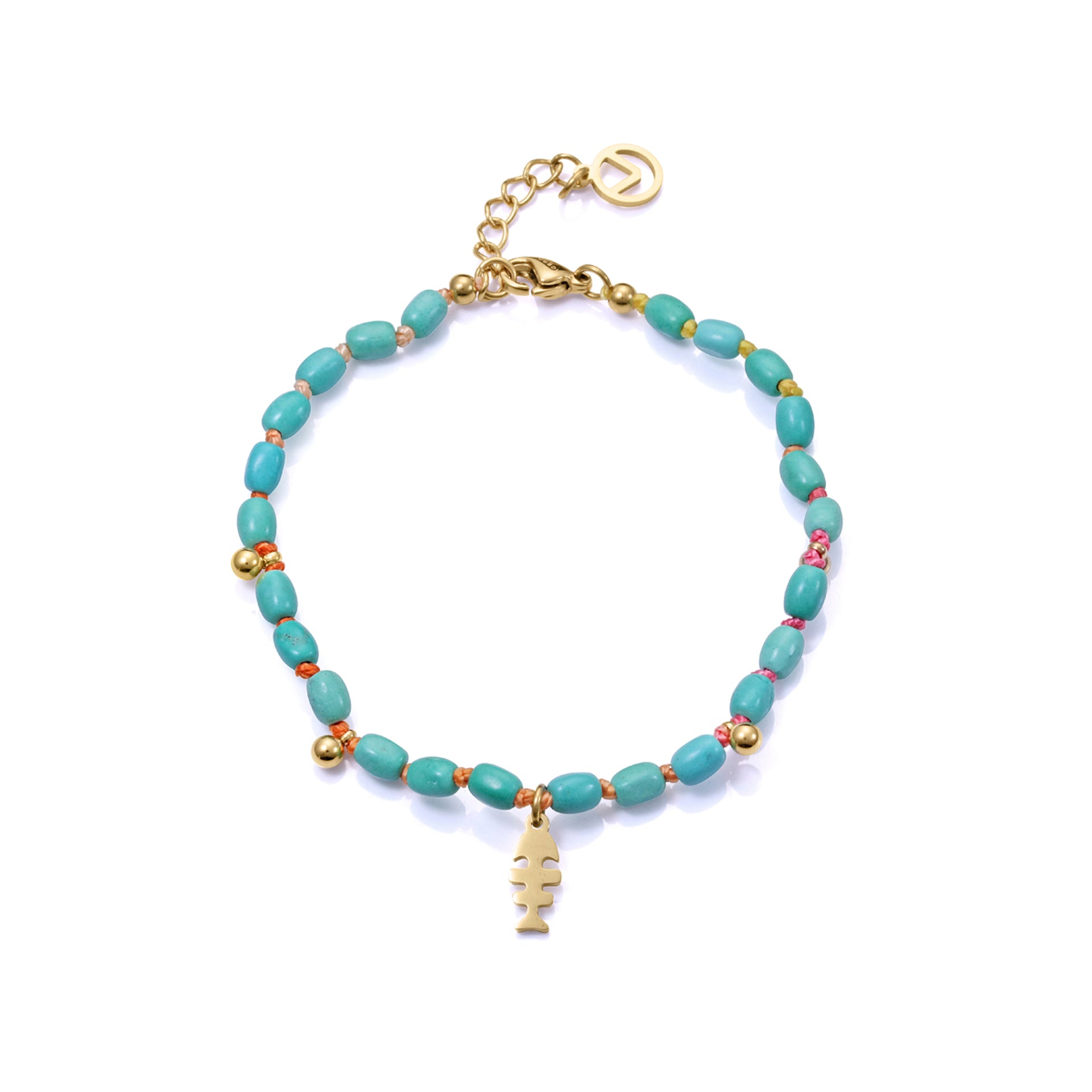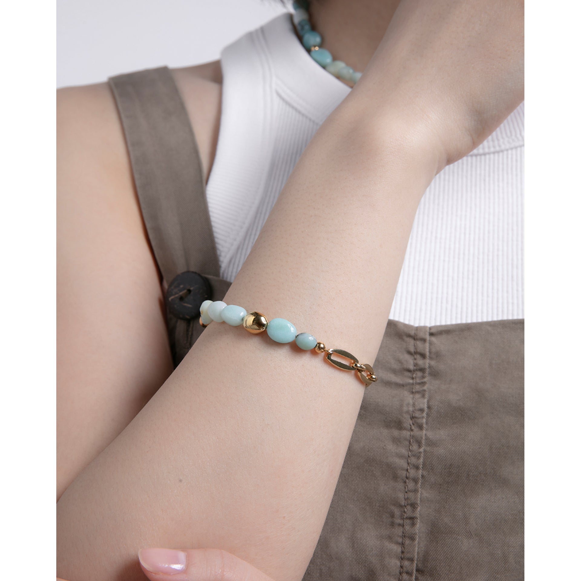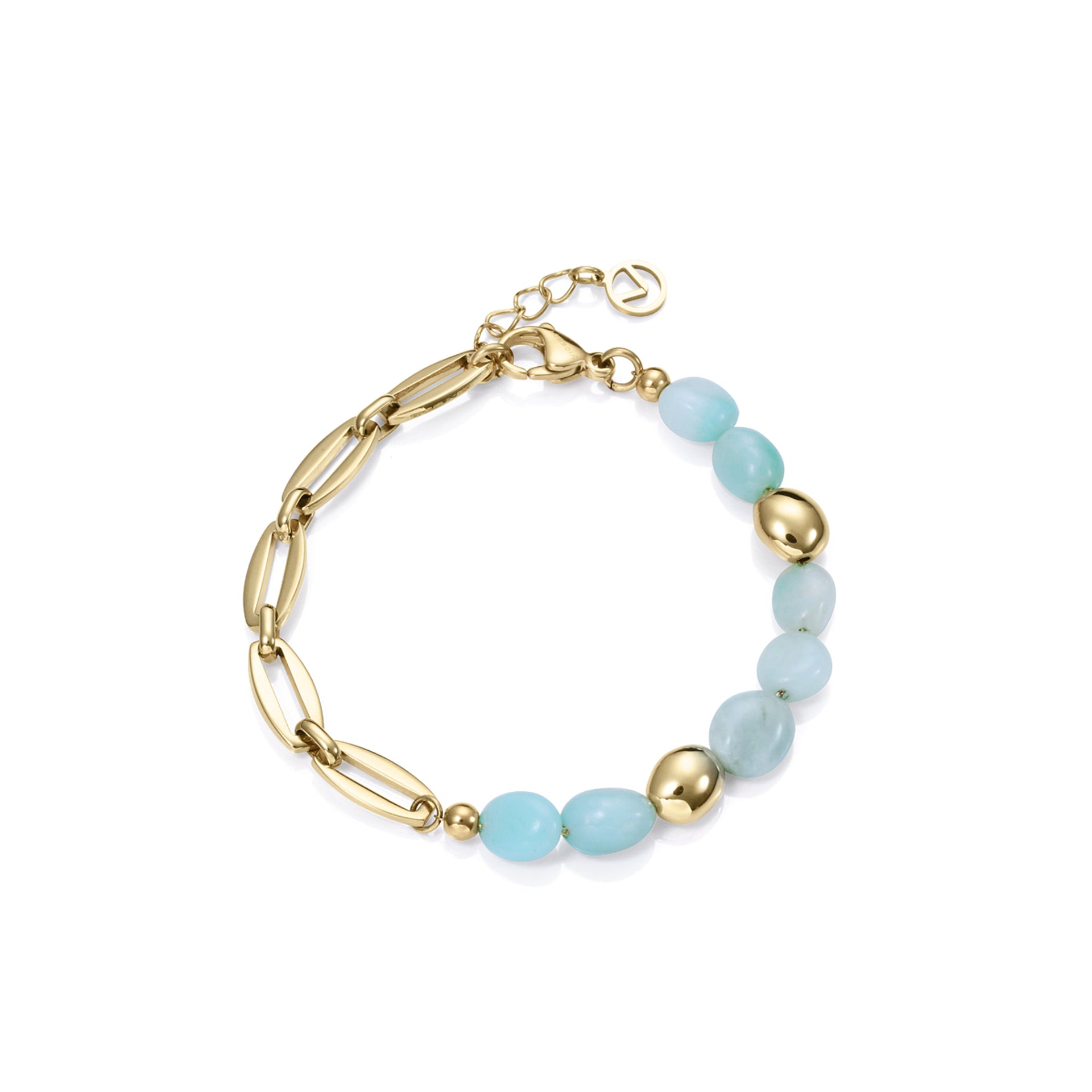 Collana in acciaio dorato da donna con pietre naturali di amazzonite